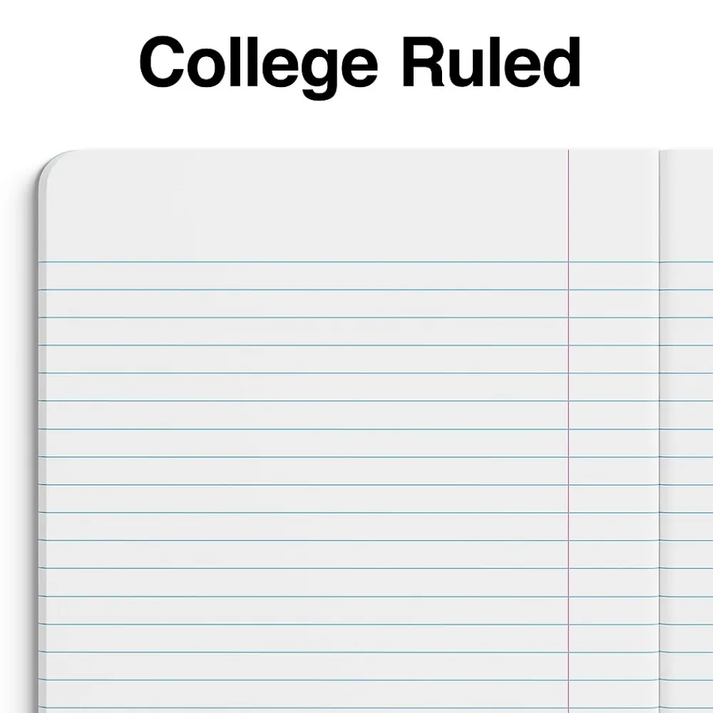 Handle your writing needs with this college-ruled composition notebook. Each book has 100 college-ruled pages, offering maximum use of space, and the sheets are permanently sewn, reducing the risk of lost pages. This Staples Business Essentials 7.5 x 9.75-inch college-ruled composition notebook has a standard design, making it easy to slip in a bag.
