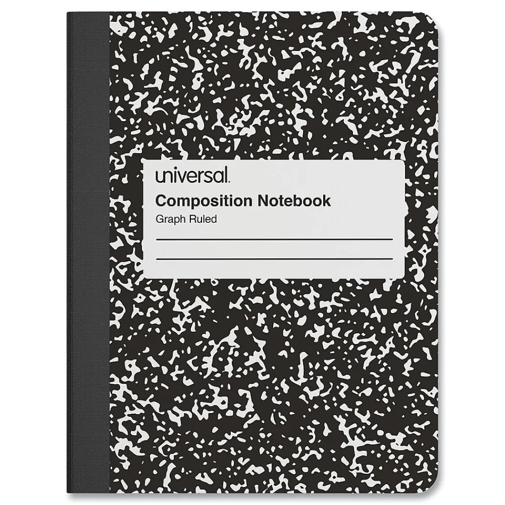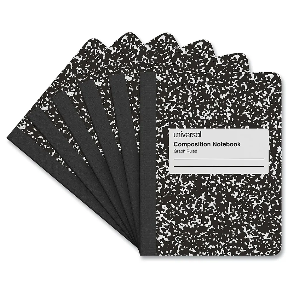 Composition Notebooks|Universal Composition Notebooks, 9.75" x 7.5", Quad, 100 Sheets, Black, 6/Pack (UNV20957)