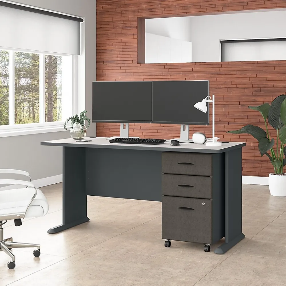 - Bundle includes: 60W x 27D Desk, 3 Drawer Mobile File Cabinet