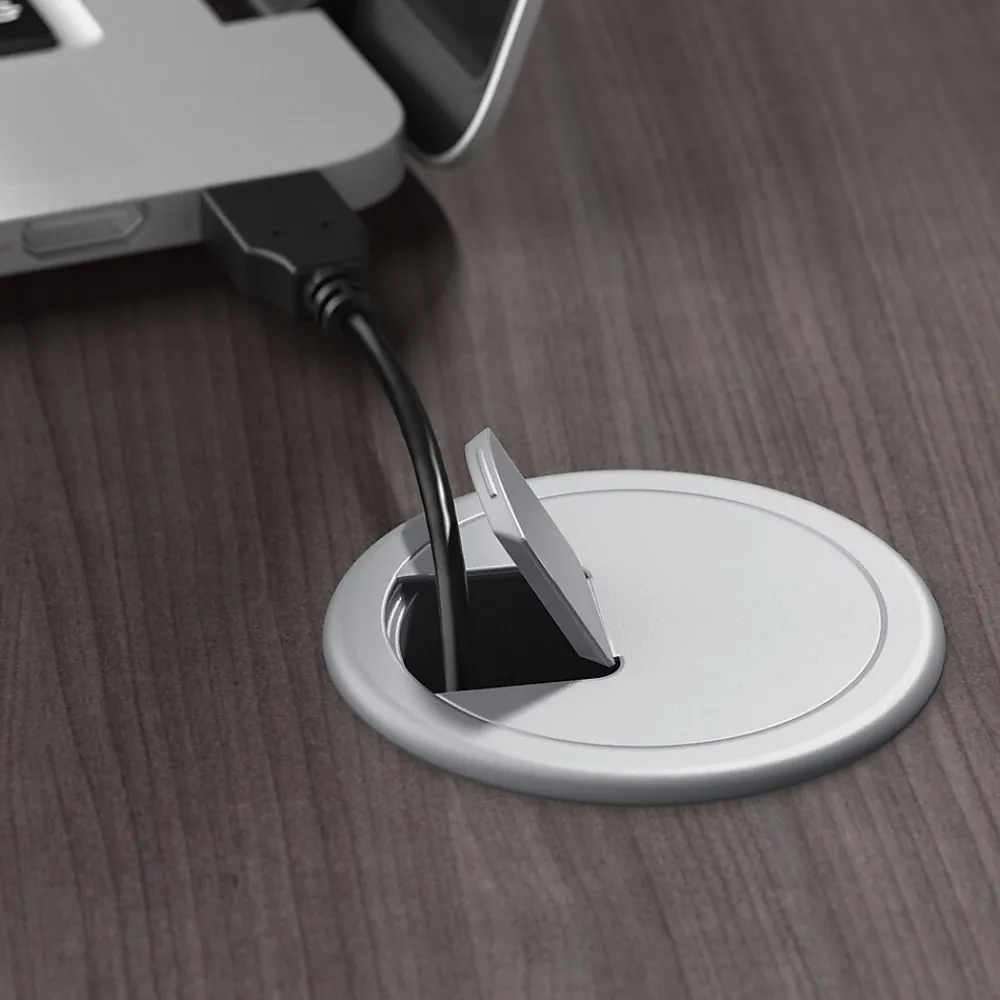 - Desk surface includes a built-in wire management grommet to keep cords and cables in order