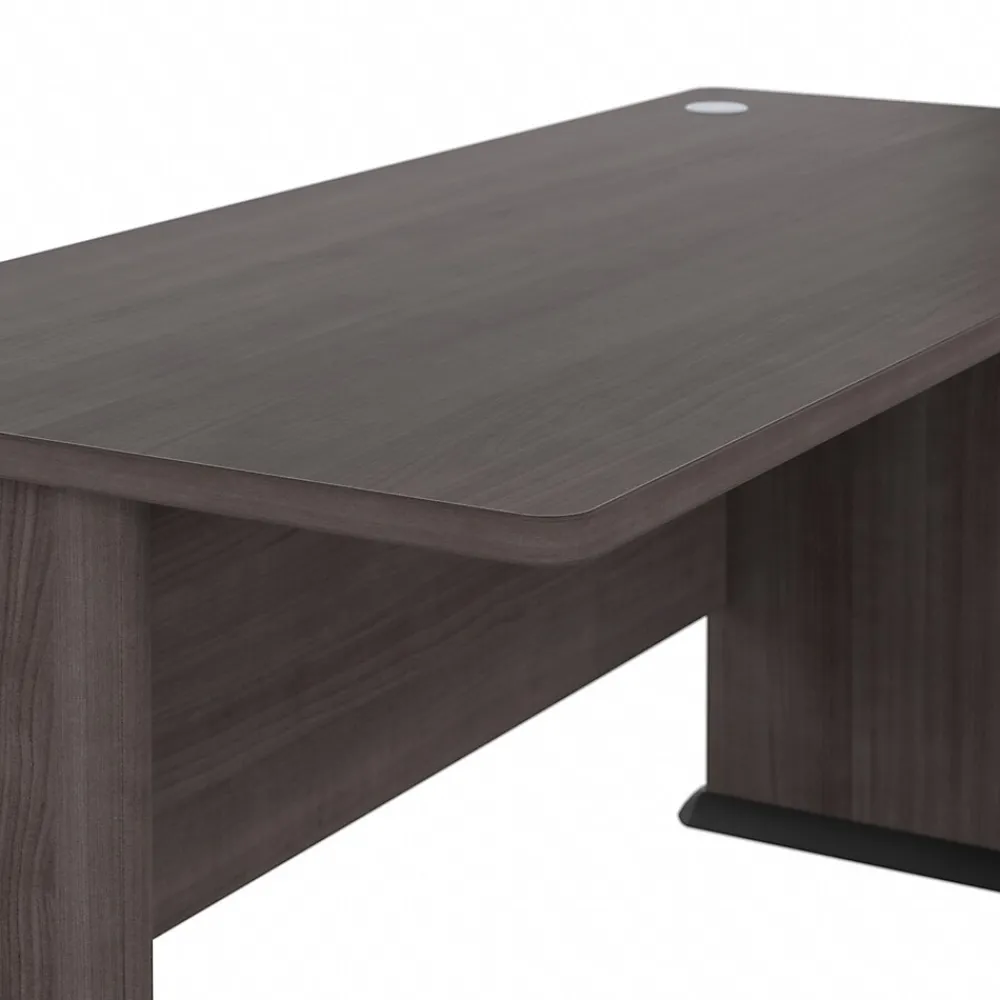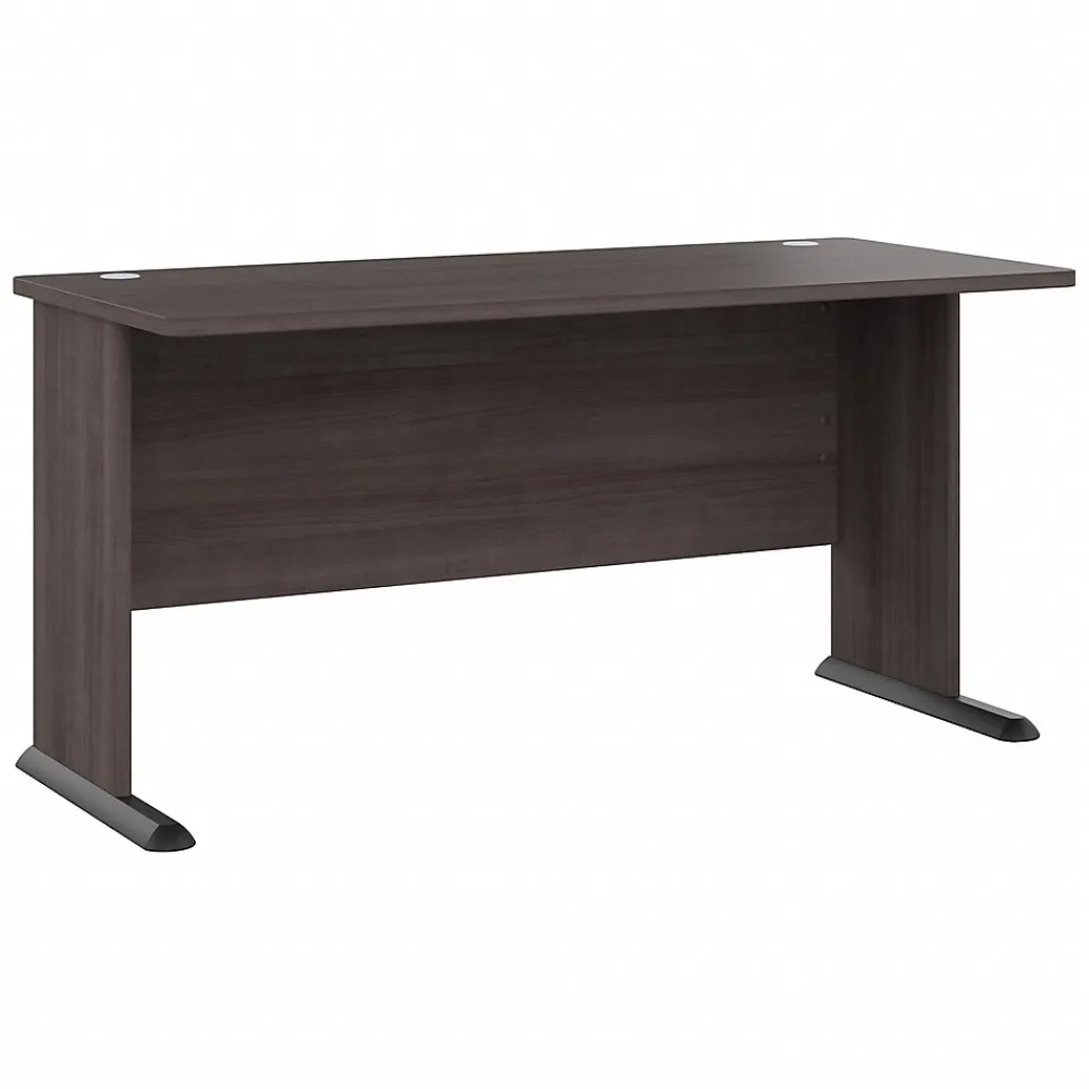 The Bush Business Furniture Studio A 60″W computer desk combines a fresh contemporary appearance with the commercial-quality construction needed to withstand years of everyday use. A spacious work surface makes this large desk a perfect choice for professionals and gamers who prefer having ample room to spread out. Set up with a computer and equipment on the durable thermally fused laminate desktop that supports up to 200 lbs. Two built-in wire management grommets keep cords and cables in order, so the surface remains free from unnecessary clutter. Wall attachment hardware is included for maximum safety and security in any home or professional office. This long desk has been meticulously tested to meet or exceed the ANSI/BIFMA quality standards for safety, durability, and performance and is backed by a 10-year manufacturer warranty. American-made with US and imported parts.
