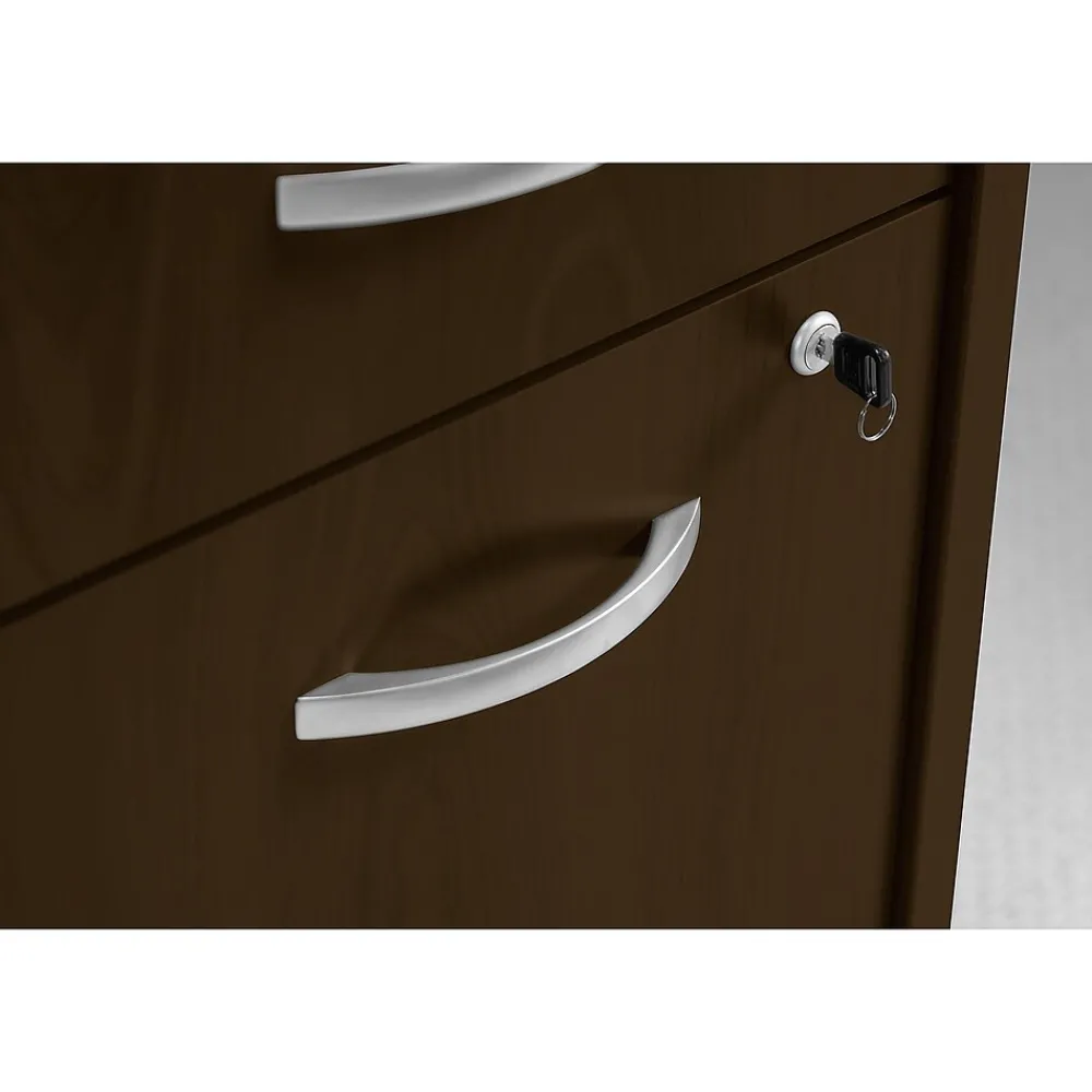 Uncomplicated design with simple lines, the Bush Business Furniture Westfield 66W Shell Desk and 2-Drawer Mobile Pedestal provide the rudimentary elements for any office. The work space features a durable Thermally Fused Laminate desktop resisting scratch and stains and a wire management system with desktop grommets. The 2-Drawer Mobile Pedestal unit holds letter, legal, and A4 size files in its full-extension drawers and it rolls conveniently under the desktop to minimize the office footprint. This product is solidly constructed, meets ANSI/BIFMA test standards and is backed by 10 Year Warranty. American made with U.S. and imported parts.