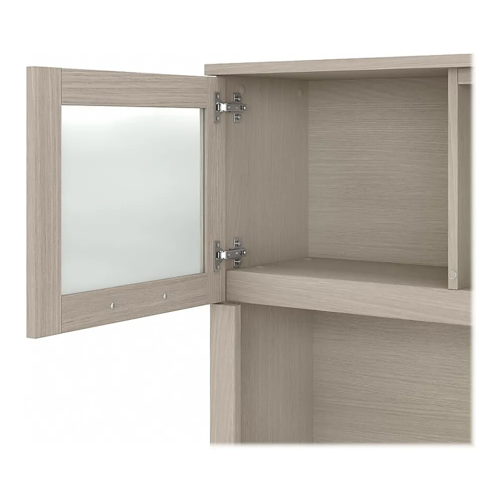 Maximize the potential of your home office with the Bush Furniture Somerset 60″W L-shaped desk with hutch. Create your remote work headquarters with space for a computer, phone, printer, and more. A convenient pullout shelf provides a perfect place to keep a keyboard or laptop, while a storage cabinet and box drawer offer plenty of space for supplies. A file drawer with ball bearing slides allows for easy access to letter-size documents. A wire management slot helps keep cords and cables in order. The hutch features open compartment for books or decorations, an adjustable shelf to hold work in progress, and two frosted glass doors that provide concealed storage. This home office furniture set is tested to meet ANSI/SOHO standards for safety and performance and is backed by the Bush Furniture 6-year manufacturer warranty. American-made with US and imported parts.