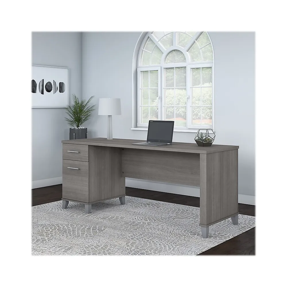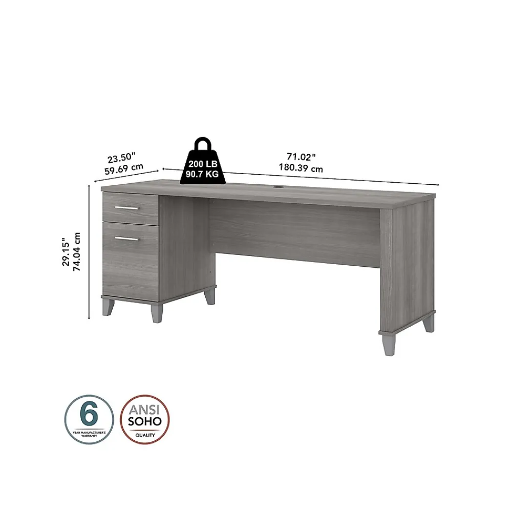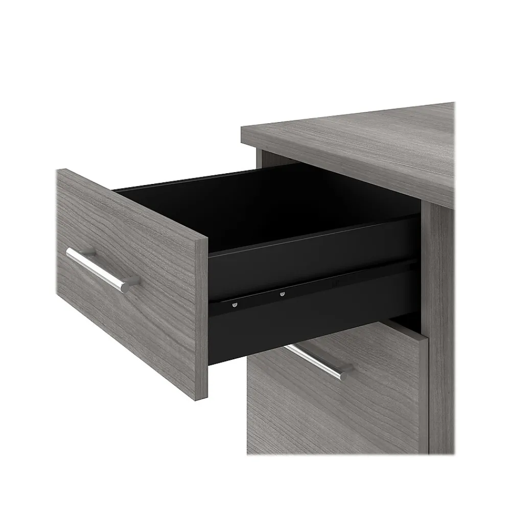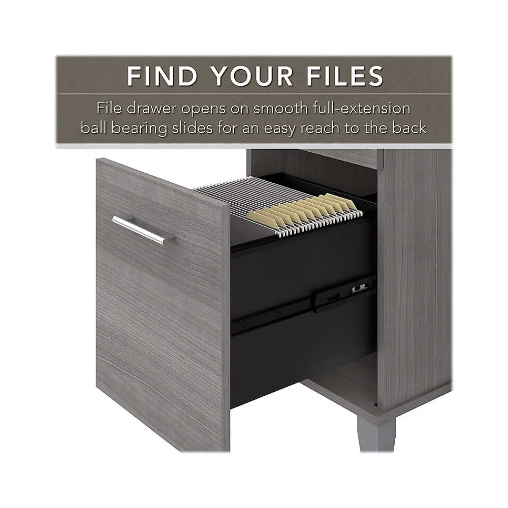 An expansive work surface and built-in storage make the Bush Furniture Somerset office desk with drawers a perfect choice for your home office. The spacious desktop offers plenty of room to spread out with a computer and paperwork and includes a wire management grommet to keep cords and cables secure and out of sight. The desk’s file drawer opens on full-extension ball bearing slides for easy access to legal- and letter-size documents, while a box drawer keeps the office supplies and utensils you need close by. A finished back side allows the desk to look great no matter where it’s positioned in the room. The office desk with drawers meets or exceeds ANSI/SOHO standards for safety and performance and is backed by a 6-year manufacturer limited warranty.