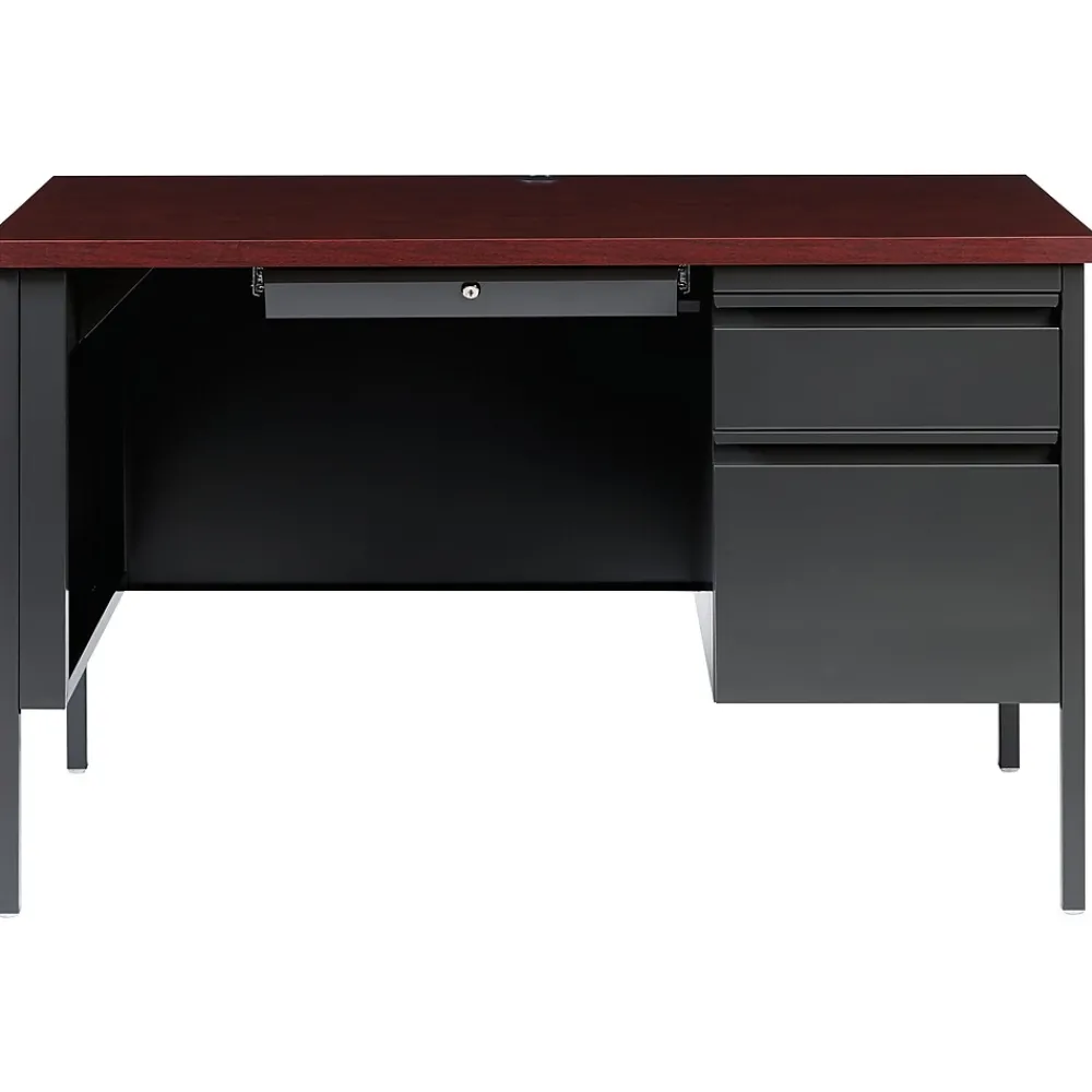 Commercial grade metal desks are perfect for business, educational or personal offices. These desks are constructed with high quality durable materials that are suitable for heavy use. Standard features include: full extension ball-bearing slides for smooth drawer action, central locking center drawer, and a durable laminate work surface. Desk ships fully assembled except for the legs. Hardware to attach legs is included. All desks are designed to meet or exceed ANSI-BIFMA industry standards for performance and workmanship and are backed by a Limited Lifetime Warranty.