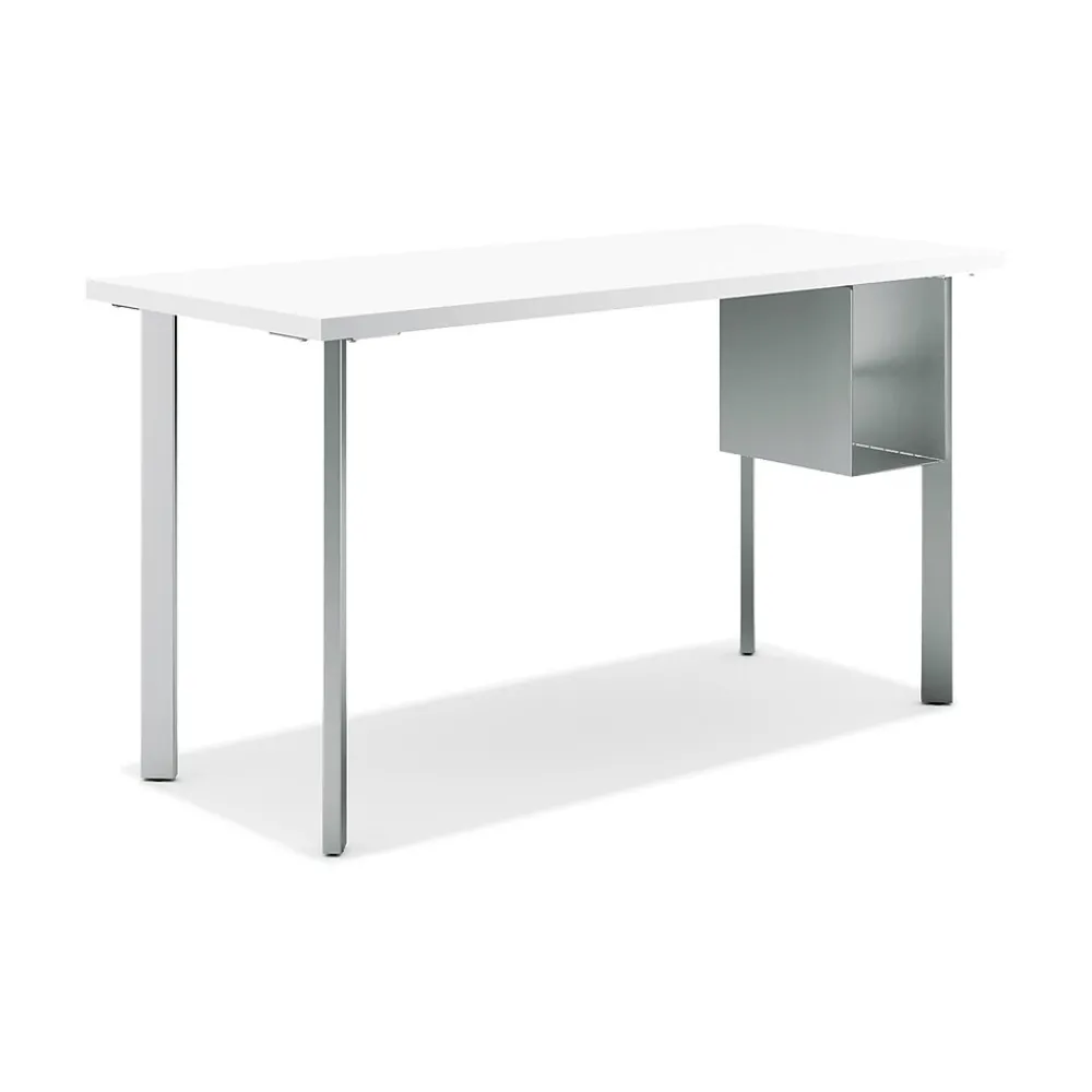HON Coze Table Desk | 54″W x 24″D | Designer White Laminate | Silver Leg Finish | U-Storage Included