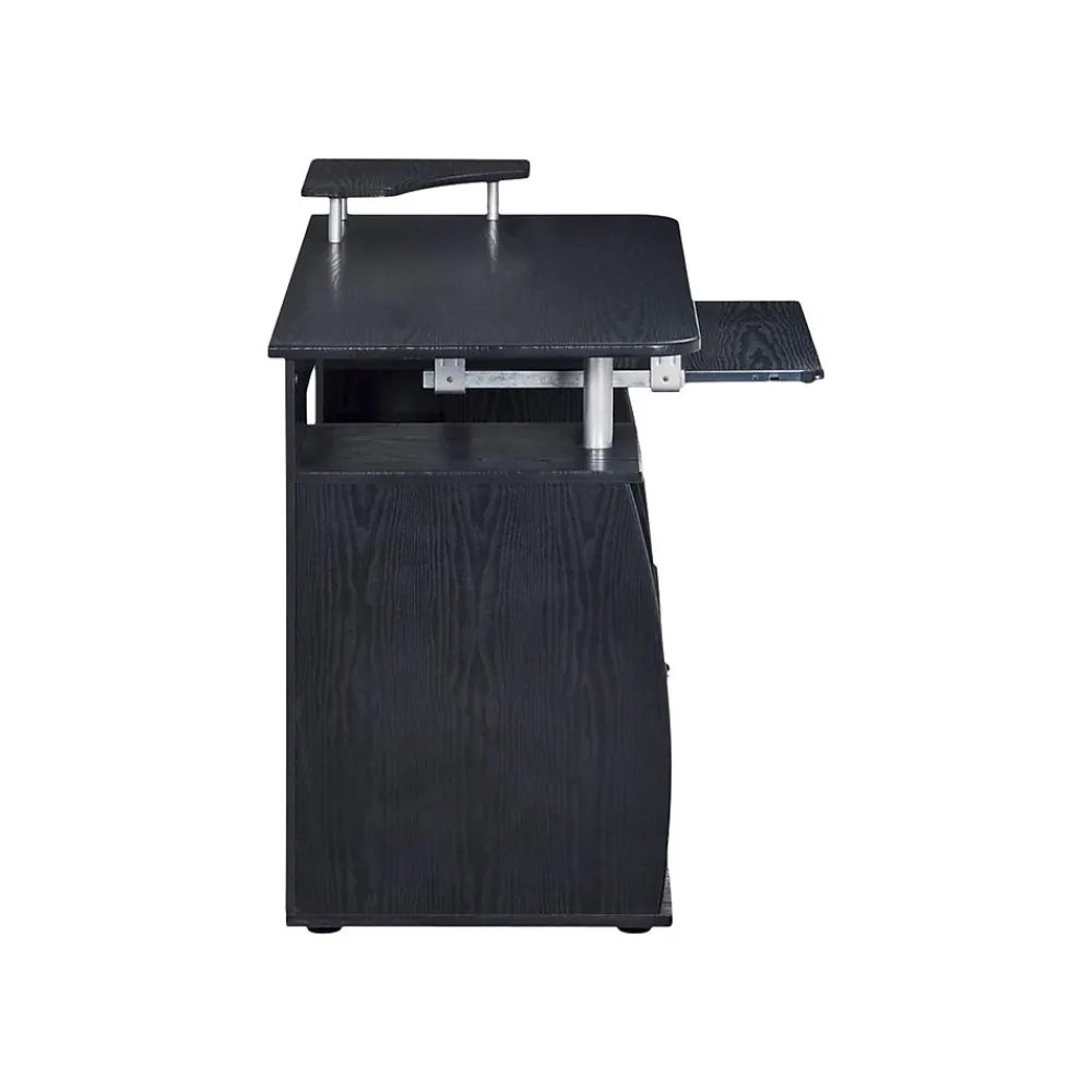 - Includes an elevated accessory shelf, two convenient shelves underneath top, two standard shelves for documents and accessories, and an open CPU compartment