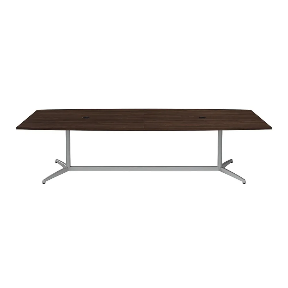 Bring your team together in a private or open plan office with the Bush Business Furniture 120W x 48D Boat Shaped Conference Table. Perfect for medium to large-sized groups, this meeting table provides ample room for 8-10 users to collaborate with laptops, paperwork and other materials. A durable thermally fused laminate surface with continuous edge banding protects against everyday damage while a finished underside prevents snagged clothing. The tabletop also has two wire management grommets to accommodate a projector or speaker phone. The conference room table is supported by a sturdy metal base for a weight capacity of 200 pounds, making it great for use in a variety of professional and educational settings. This long office table is tested to meet ANSI/BIFMA standards for safety and performance and is backed by a Limited Lifetime Warranty. North American made with globally sourced materials.