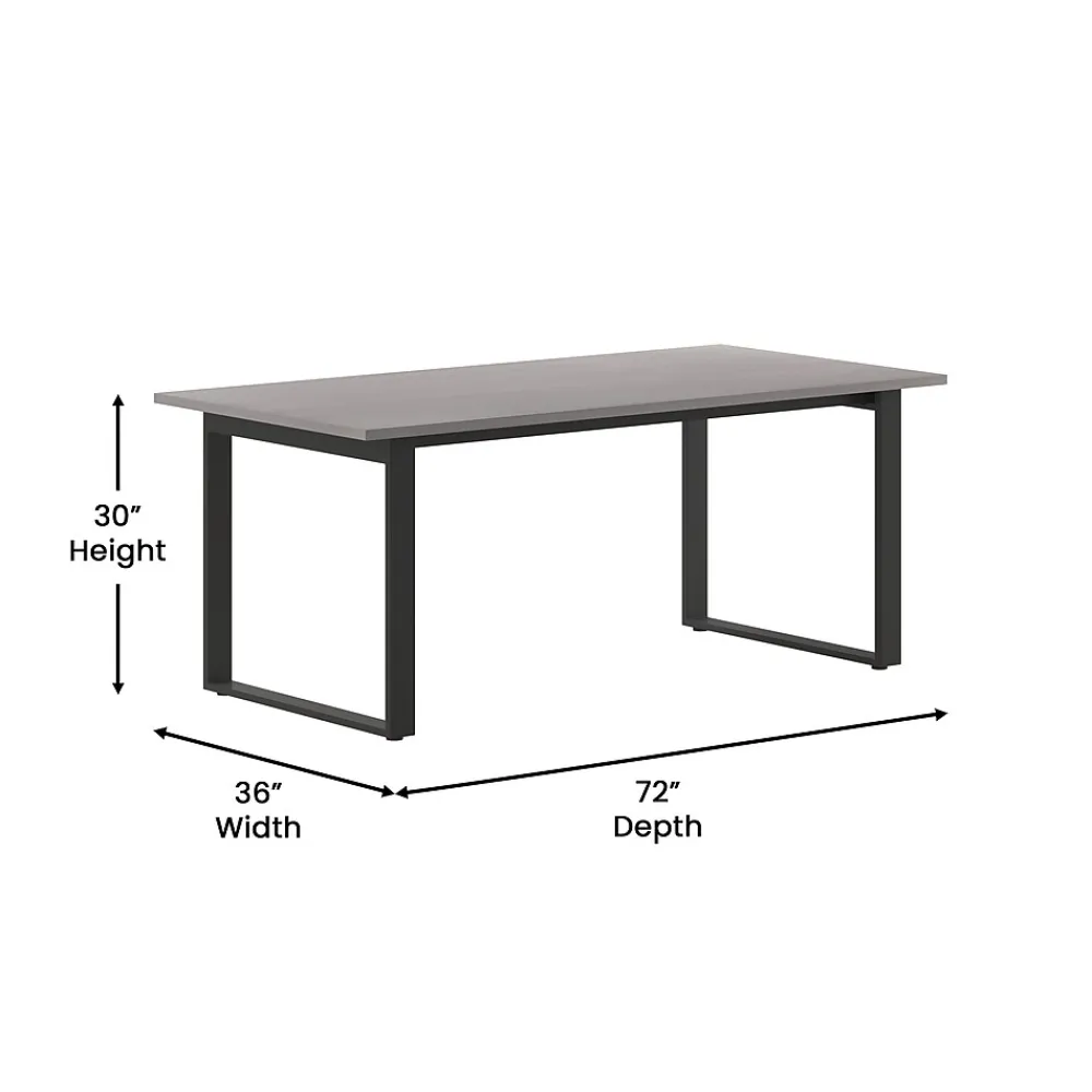 Foster big thinking during brainstorming sessions or encourage open communication and interaction between stakeholders during important meetings with this 72×36 commercial grade conference table. Available in timeless finishes that will blend well in any environment, this boardroom table will make a statement while providing ample space for multiple guests. The liquid and scratch-resistant 1 inch thick table top with a durable laminate finish on both sides and PVC edging increases durability for long-lasting use. The heavy-duty, powder coated, U-frame steel base comes with included hardware and easily attaches to the underside of the table into the predrilled holes. This conference room table holds up to 300 lbs. static weight, and features adjustable floor glides ensuring a level surface. Assembly takes less than 10 minutes and cleanup is easily achieved with a damp cloth.