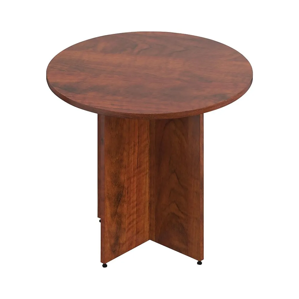 Come to this table when it’s time to meet with coworkers or clients. Its 36-inch surface provides adequate space for one-on-one interviews or a small working group, and the superior laminate and particleboard construction is Greenguard-certified for sustainability. This Offices to go circular table is in an American dark cherry finish for a rich, natural aesthetic and has a cross base for stability.