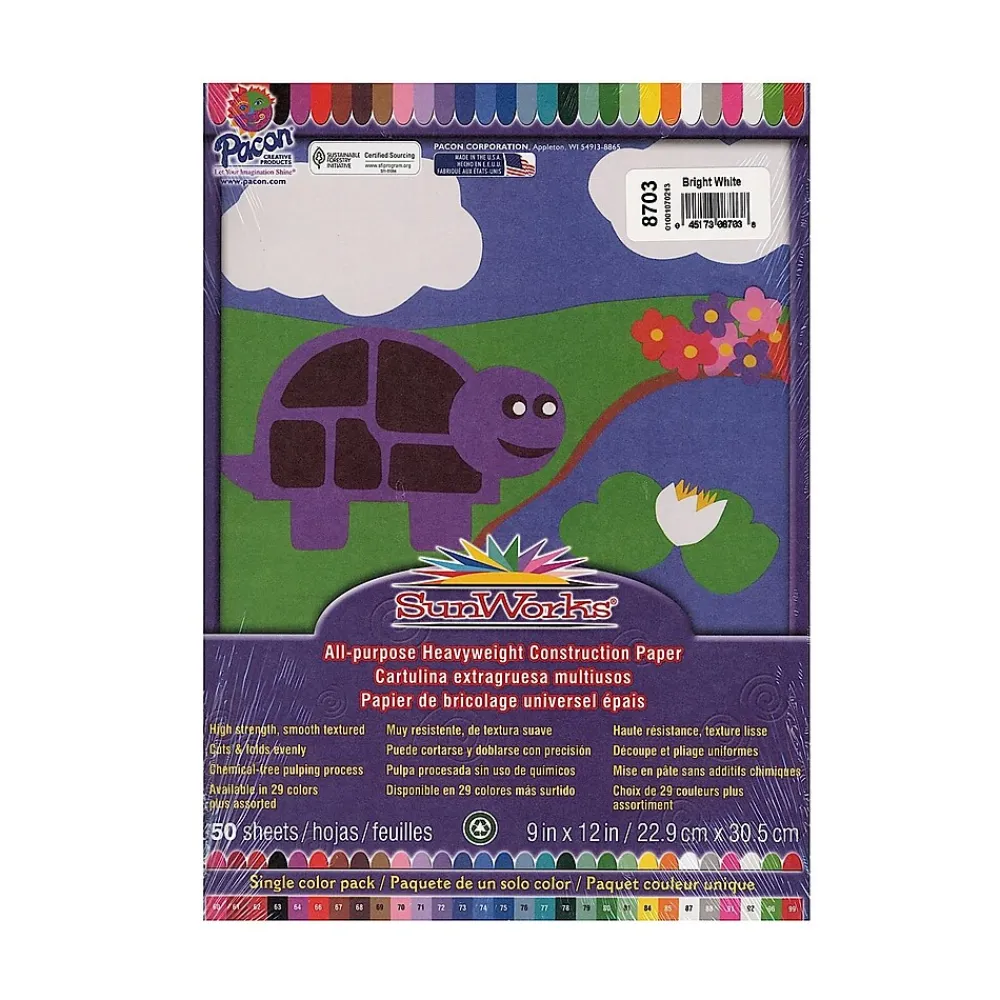 Brightly colored, all-purpose, high bulk, high strength, smooth textured heavyweight groundwood construction paper with long, strong fibers that cut clean and fold evenly without cracking. Electricity used to make this paper is generated from 100% hydro power. It is also made with a chemical-free pulping process to help ensure a cleaner environment. Recyclable.Each pack contains 50 sheets.