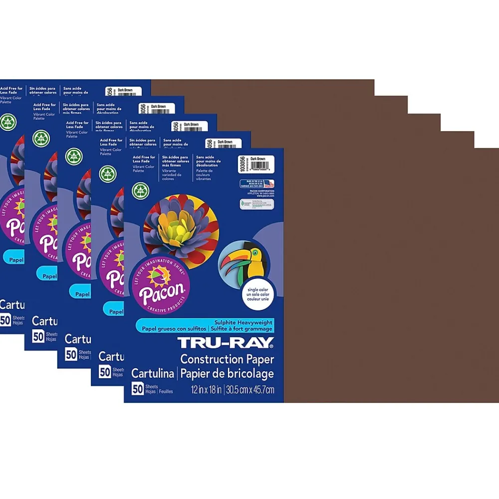 Heavyweight 100% vat-dyed sulphite with longer, stronger fibers. Tru-Ray® Construction Paper is tough enough to take scoring, folding and curling without cracking and tearing. Its superior fade-resistance keeps projects brighter and fresher longer. Each pack includes 50 sheets. Each sheet measures 12″ x 18″. Sold as 5 packs for a total of 250 sheets.