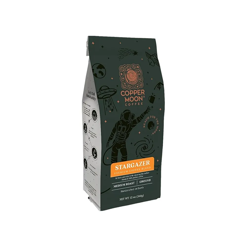 Copper Moon Stargazer premium coffee blend is a smooth, well-balanced blend that is great for any time of day. Enjoy a perfectly roasted, mellow cup of coffee while you sit back and relax for a long gaze under the stars.