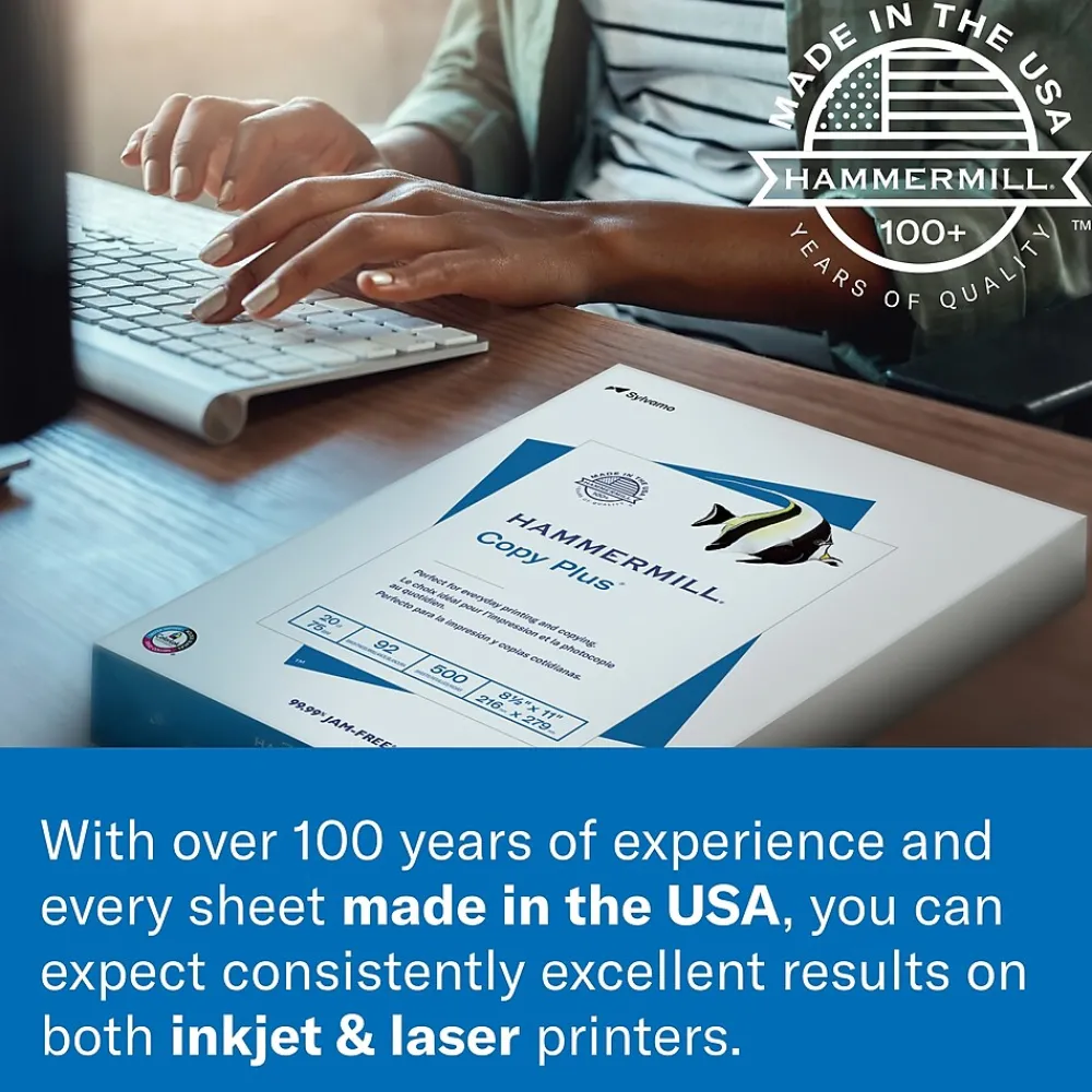 Get a handle on daily paperwork with this Hammermill Copy Plus three-hole punch copy paper. ColorLok technology delivers bold color and fast drying times, while the 99.99 percent jam-free guarantee ensures this paper runs smoothly through your printer or copier. With precisely spaced holes already added to each sheet, this Hammermill Copy Plus three-hole punch copy paper eliminates a step when preparing documents for binders.