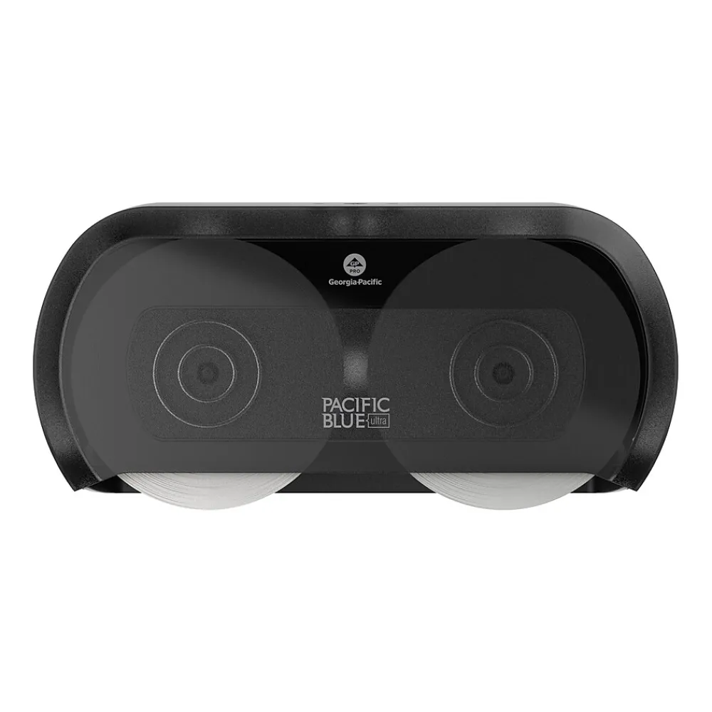 The Pacific Blue Ultra® 2-Roll Coreless Toilet Paper Dispenser complements the existing 4-Roll High-Capacity dispenser (56602A), allowing for lower capacity tissue where needed. This dispenser holds two Pacific Blue Ultra® Coreless 2-Ply Toilet Paper rolls which feature 94% less packaging compared to GP 2-Ply Jumbo Roll Tissue 12 roll case, eliminating cardboard cores and the outer carton. This dispenser and tissue combination helps improve the restroom experience while reducing maintenance time, storage space, waste, and costs.