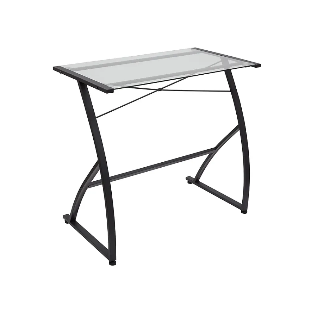 - Tempered-glass top with solid black metal frame refreshes your workplace without compromising functionality