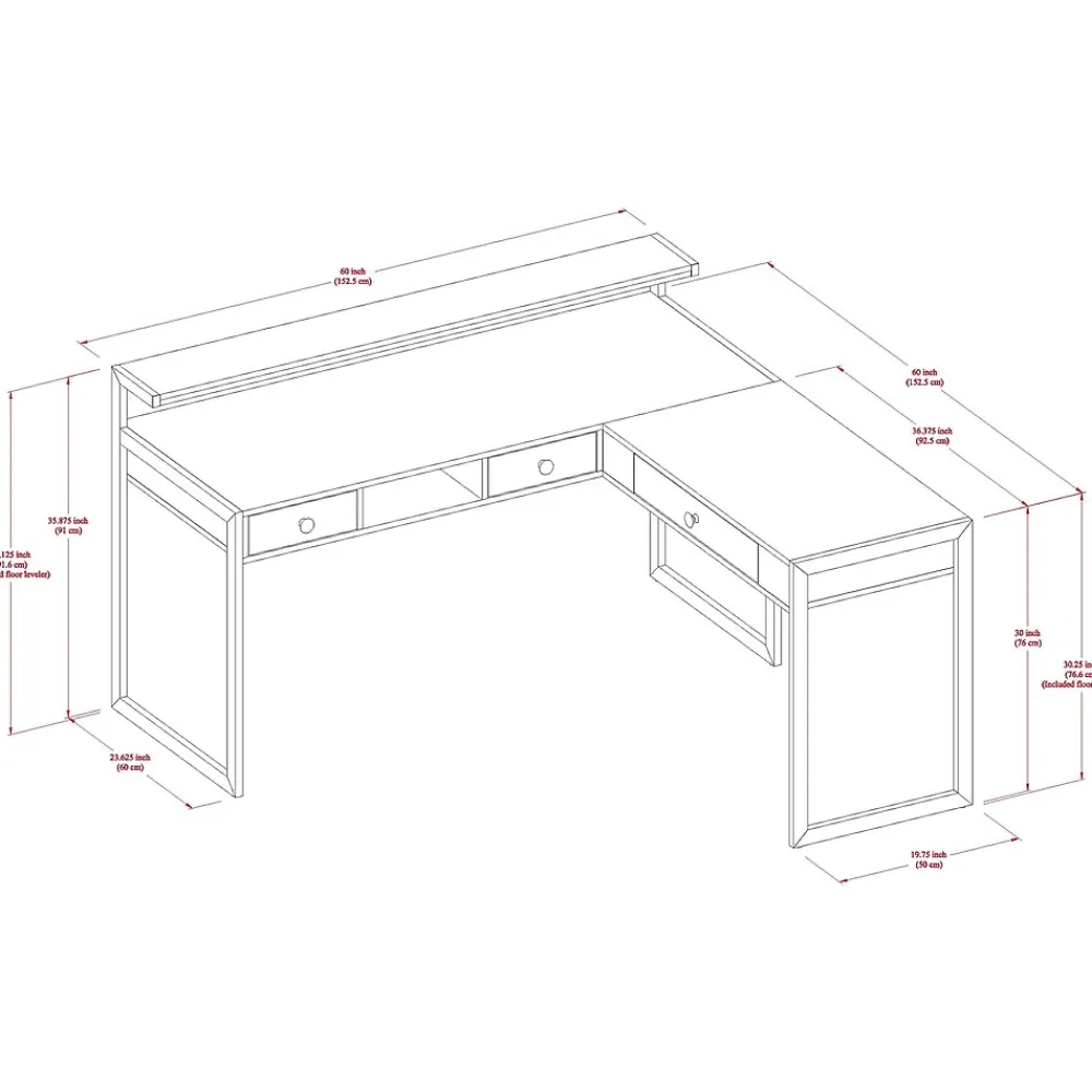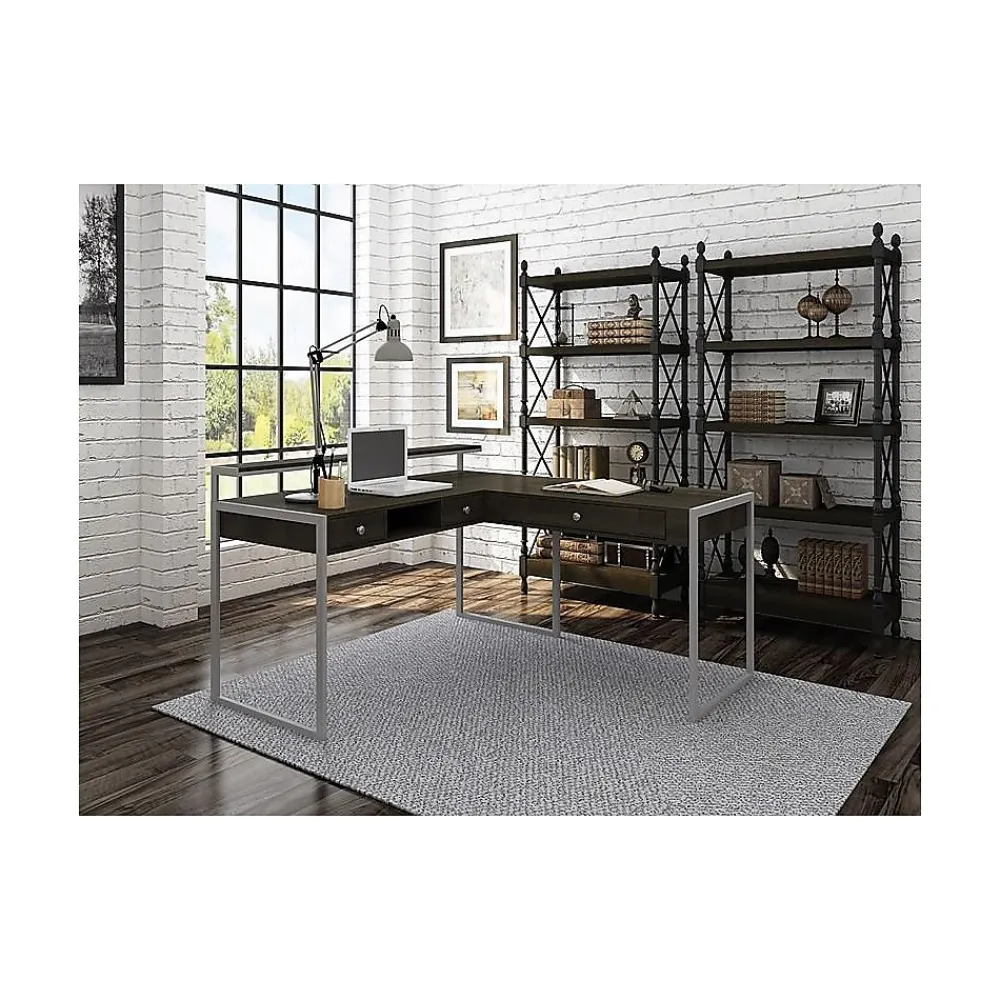 Enhance productivity and give your office a modern touch with this Whalen Asherton L desk. Ideal for maximizing office space, this understated desk fits easily in most workspaces and enhances office decor with its sturdy titanium-finished metal frame and handsome harvest oak finish. The L-shaped design offers ample space for computers and office equipment, while the built-in riser provides space for displaying photos and personal items. This Whalen Asherton L desk offers plenty of storage with three built-in drawers.