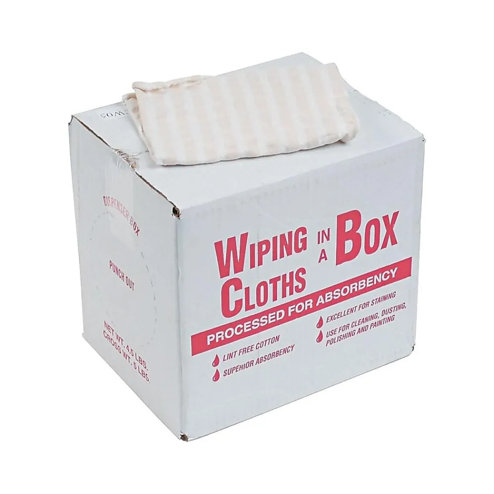 Remove dust and debris from your counters and other surfaces with this 4.5-pound box of cotton wiping cloths. The convenient box makes them easy to dispense, and the cotton material provides increased absorbency. These UNITED FACILITY SUPPLY wiping cloths are sold in bulk for company use.