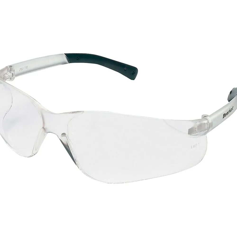 BearKat® Crews ANSI Z87 Safety glasses in clear color filter 99.9 percent of UV rays for safety and have single lens wrap-around protection. Glasses come with lens that made of polycarbonate with anti-fog coating to resist scratch.