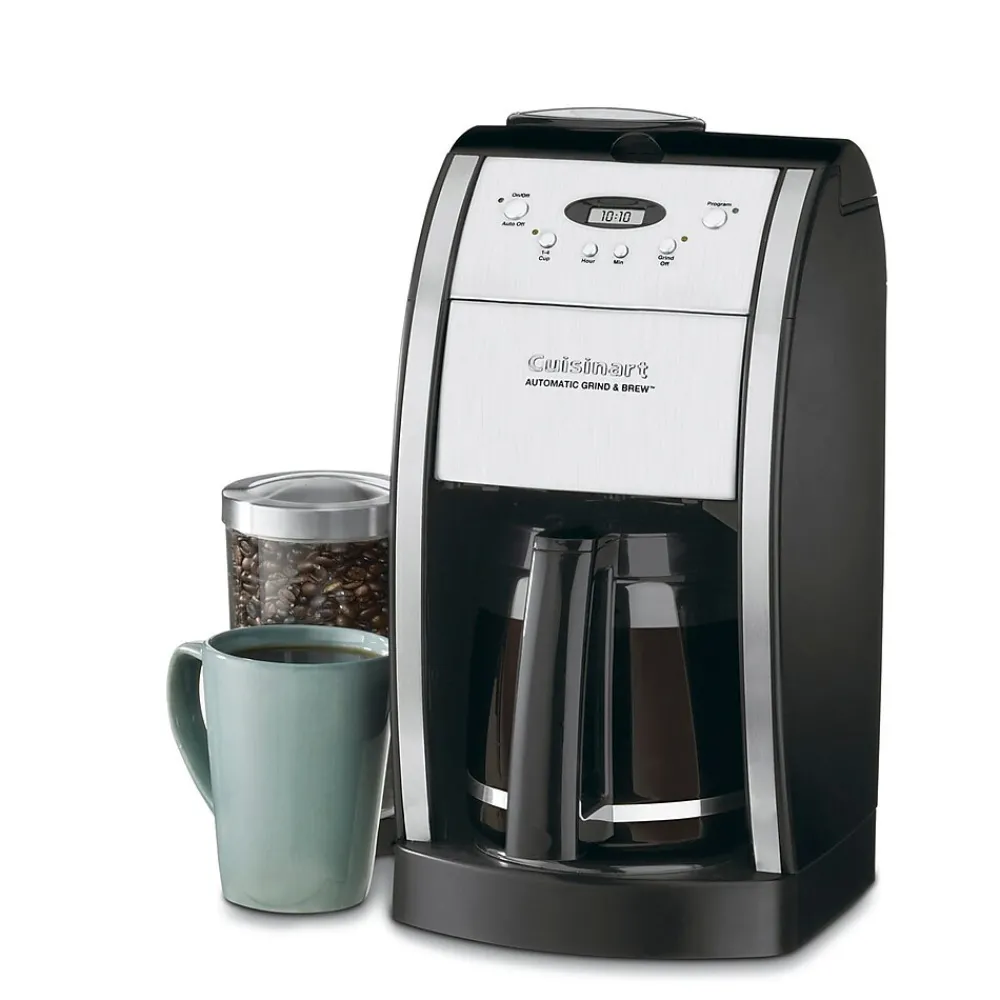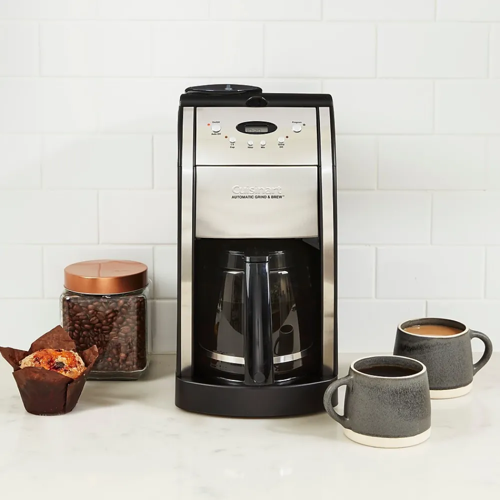 Bring out the flavors of your favorite coffee in style with the Grind & Brew 12 Cup Automatic Coffeemaker from Cuisinart. The brushed metal Italian styling houses a hidden grinder that freshly grinds your whole coffee beans just before the brewing cycle starts so that every cup is bright and balanced. Fully programmable, this 12 Cup coffeemaker will be right at home in any modern kitchen!