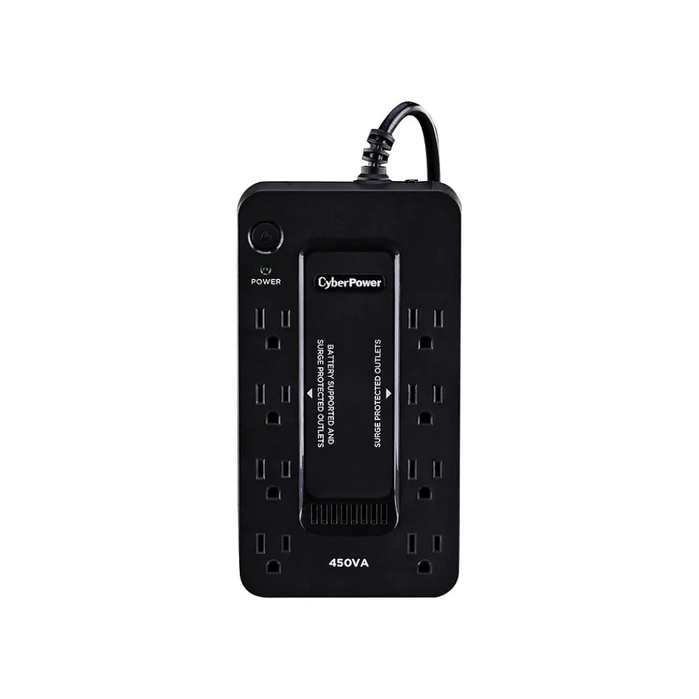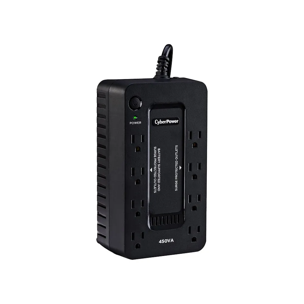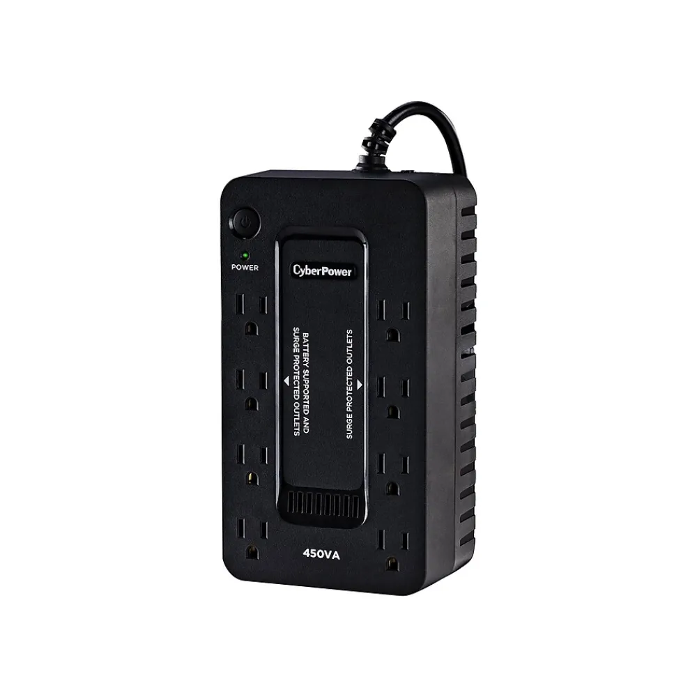 The CyberPower SE450G1 uninterruptible power supply (UPS) system provides surge protection for lightning-induced surges and other power events that can damage electronic equipment. This unit delivers enough battery backup to connected electronics during a utility power failure, so you can perform a graceful shutdown to protect against the loss of data and damage to valuable electronics including computers, gaming consoles, and broadband routers. Including a sleek new design, this UPS is perfect for all your home office and entertainment needs.