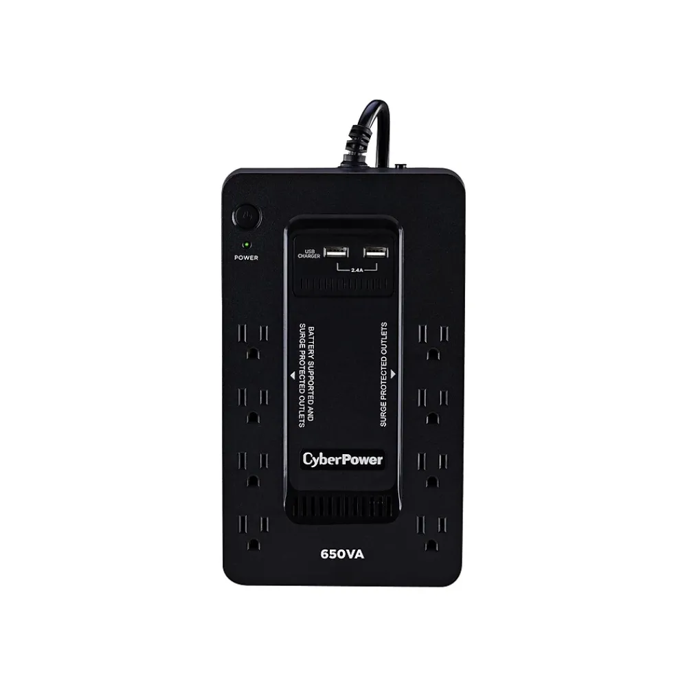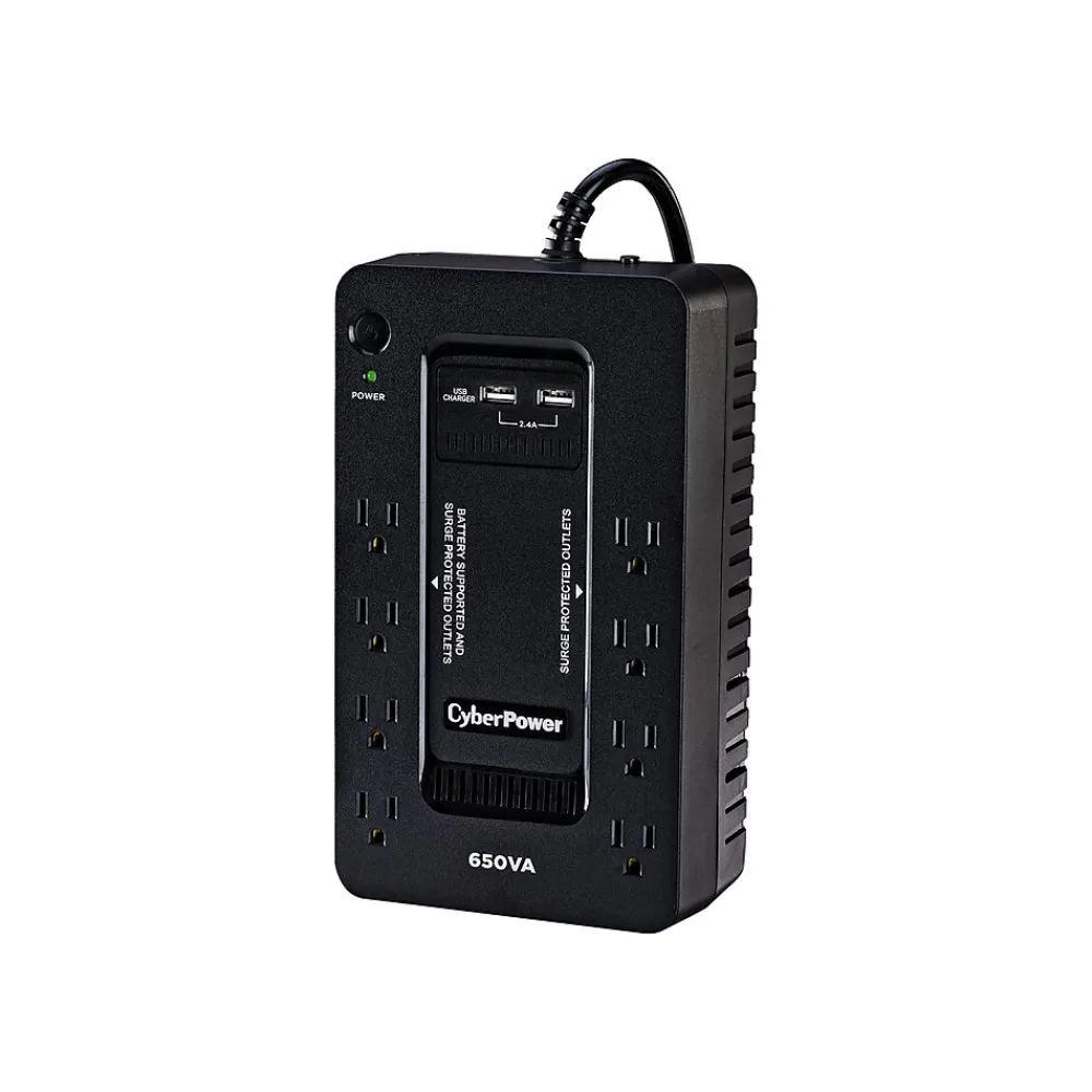The CyberPower SX650U uninterruptible power supply (UPS) system provides surge protection for lightning-induced surges and other power events that can damage electronic equipment. This unit delivers enough battery backup to connected electronics during a utility power failure, so you can perform a graceful shutdown to protect against the loss of data and damage to valuable electronics including computers, gaming consoles, and broadband routers.