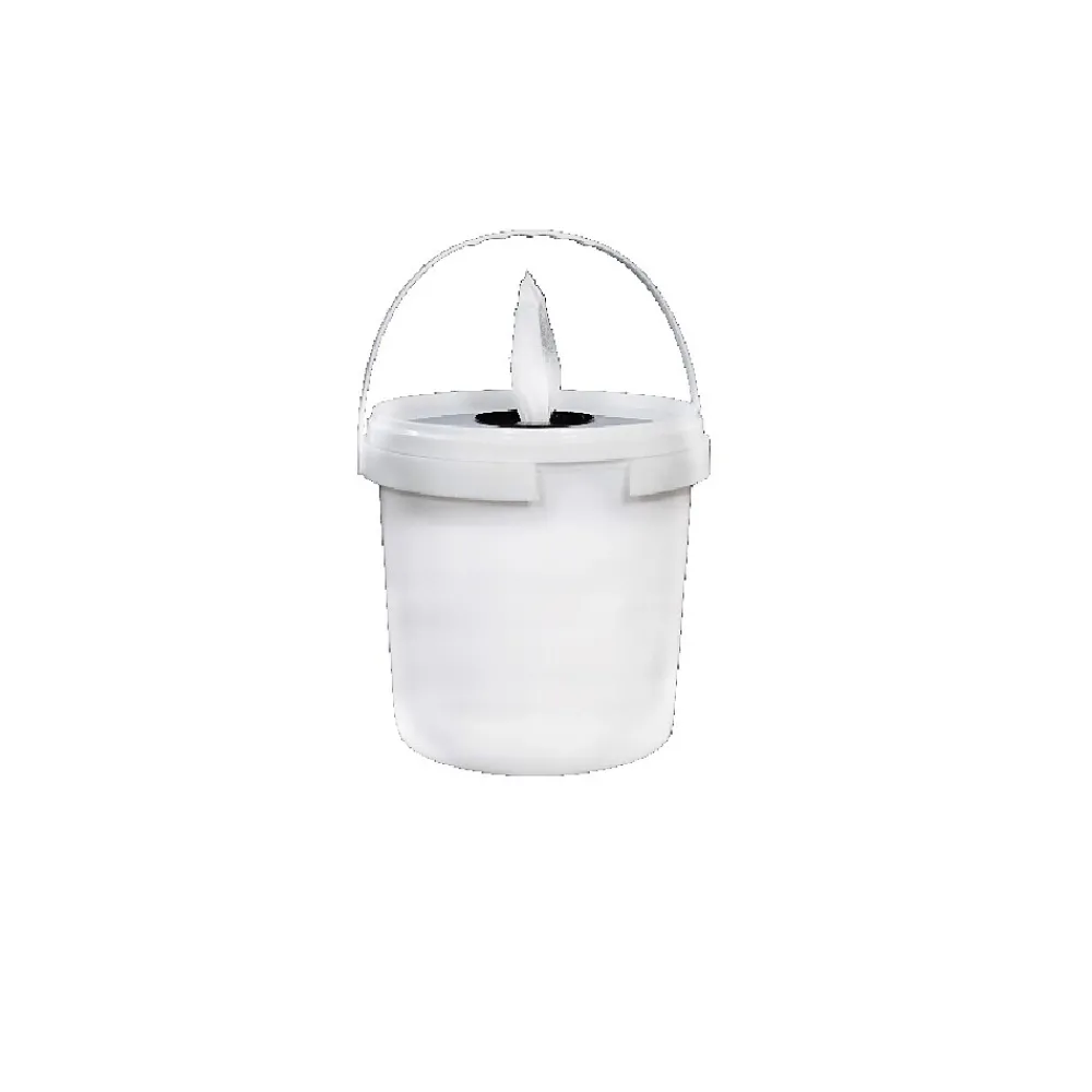 - Cross-hatch lid works with a bucket for dispensing wipes