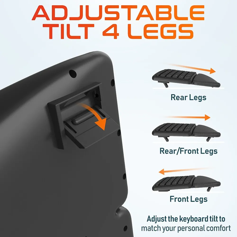 - Portable ergonomic keyboard features a full-size layout, ensuring all the keys you need for efficient typing and navigation are readily available