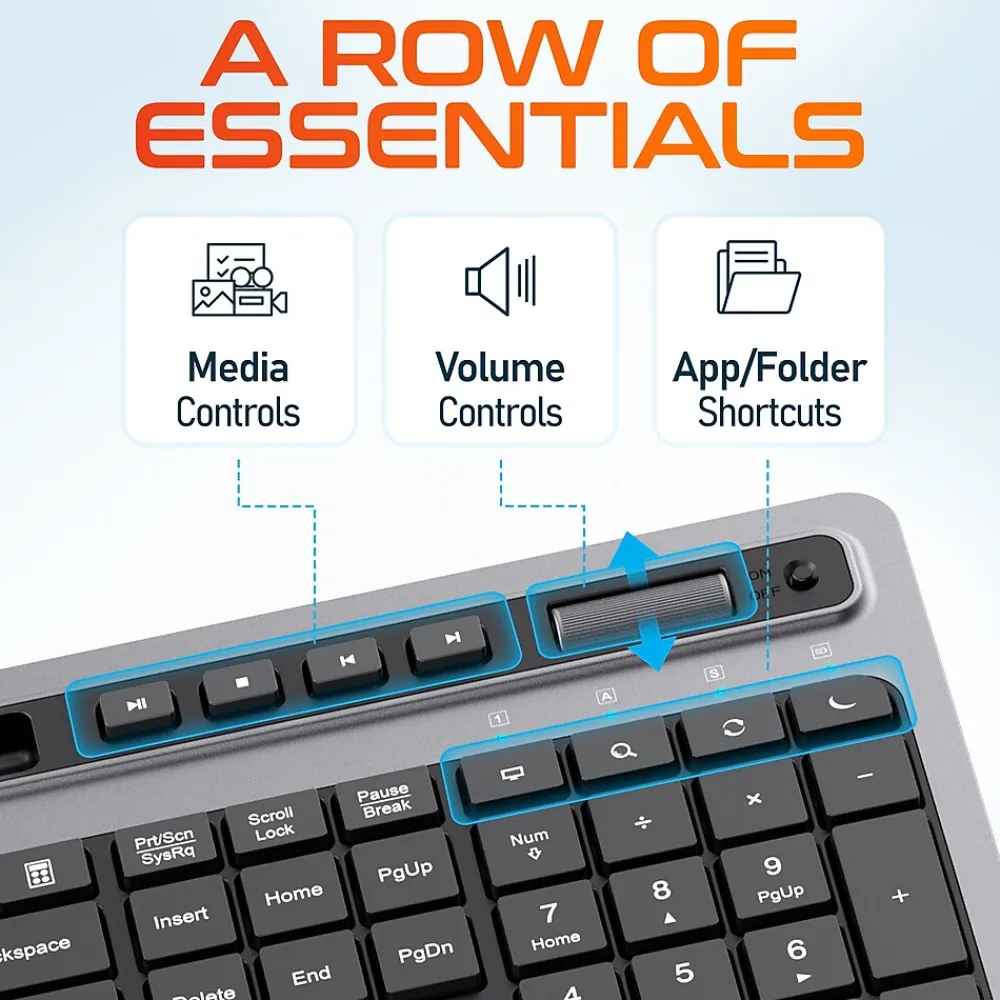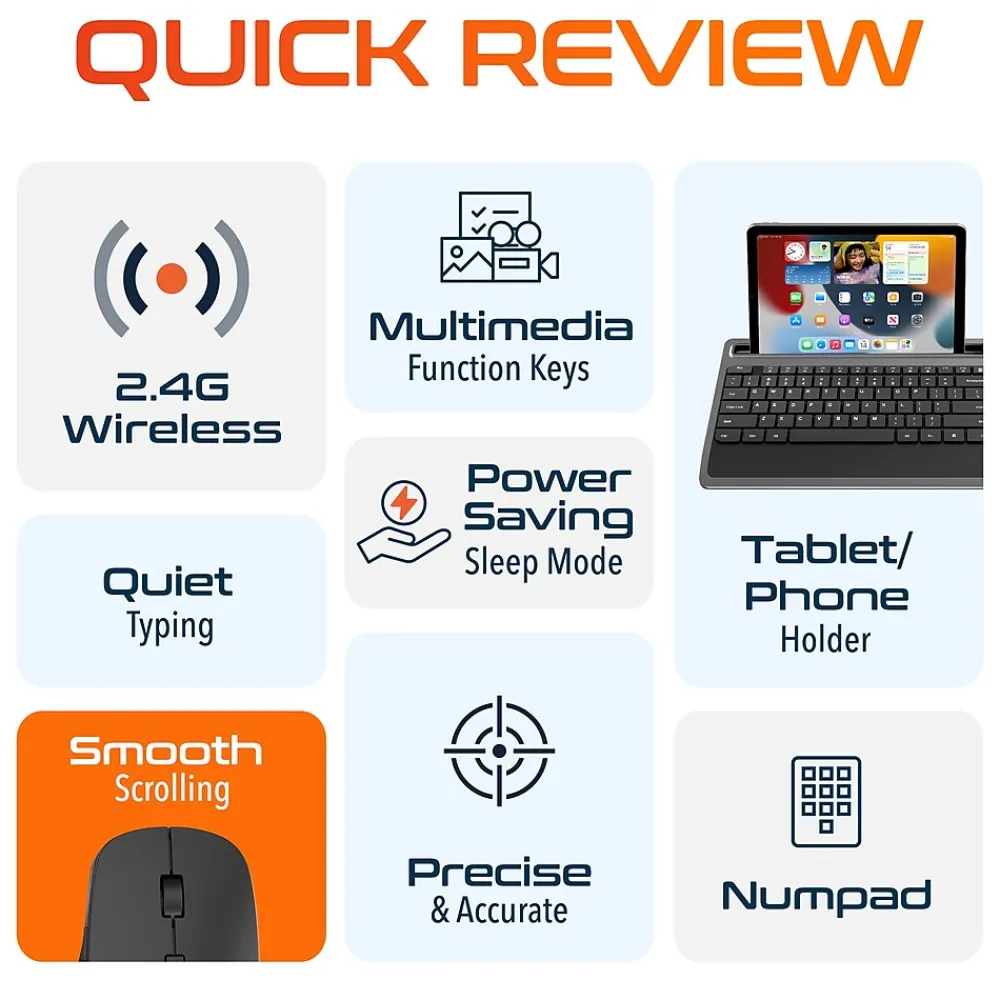 - Designed for versatility, this keyboard mouse combo is compatible with PCs, laptops, and tablets, while supporting a wide range of operating systems, including Windows, iOS, MacOS, and Linux.