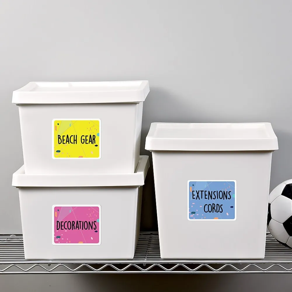 - White, rectangular paper labels deliver vivid print quality