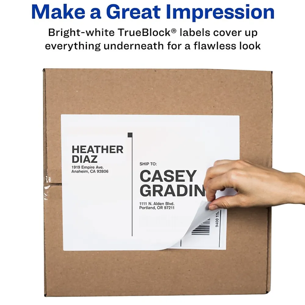 Run these full sheet shipping labels through your laser printer for high-quality results. Each one can be customized for many uses, and the smudge-free design means that printed information is easier to read. This 25-count of Avery labels are made with a permanent adhesive, so when properly attached, they stay put.