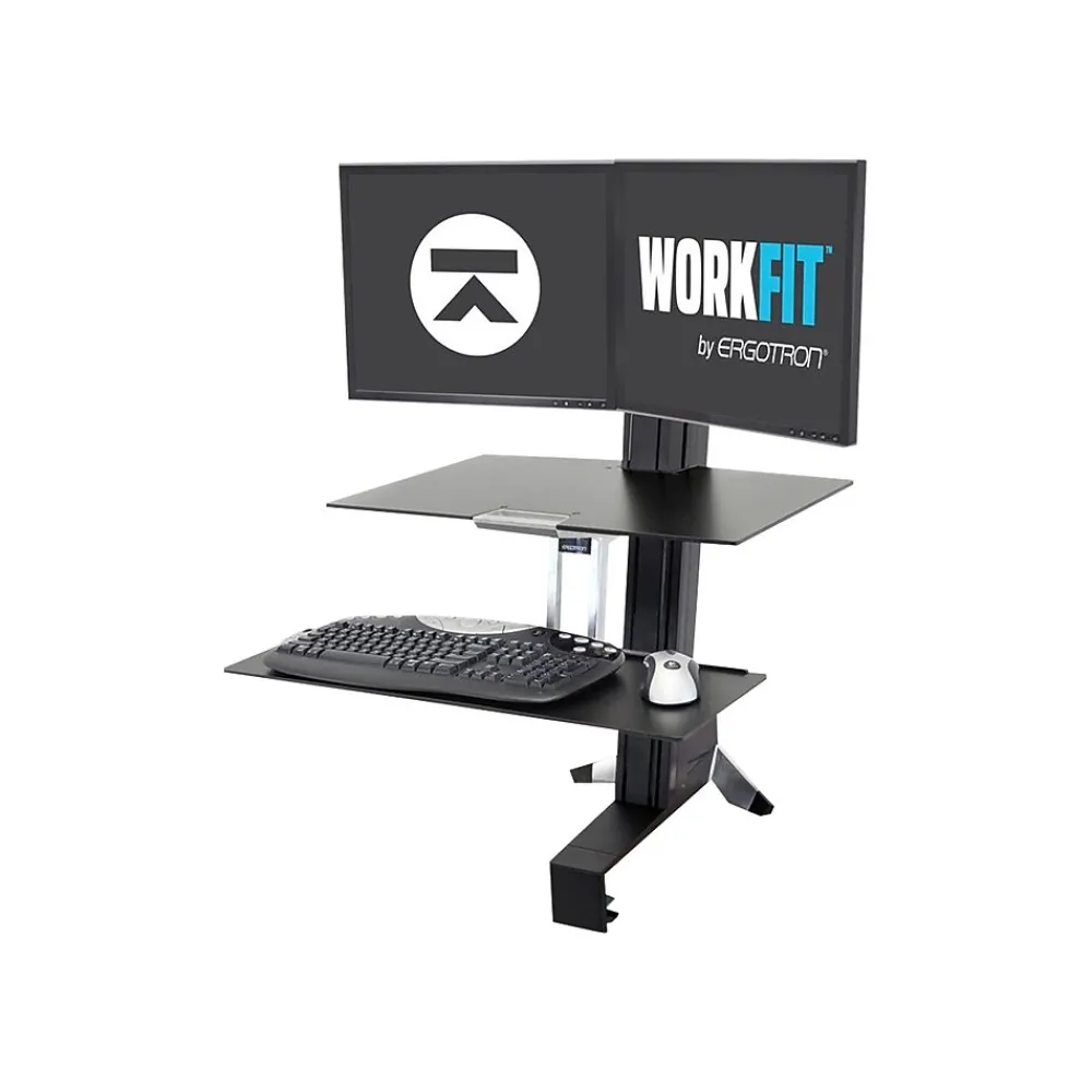 - This sit-and-stand easy-to-use dual monitor stand with a tray allows you to instantly raise or lower your keyboard and two displays in one simple motion, keeping your system stable as you work