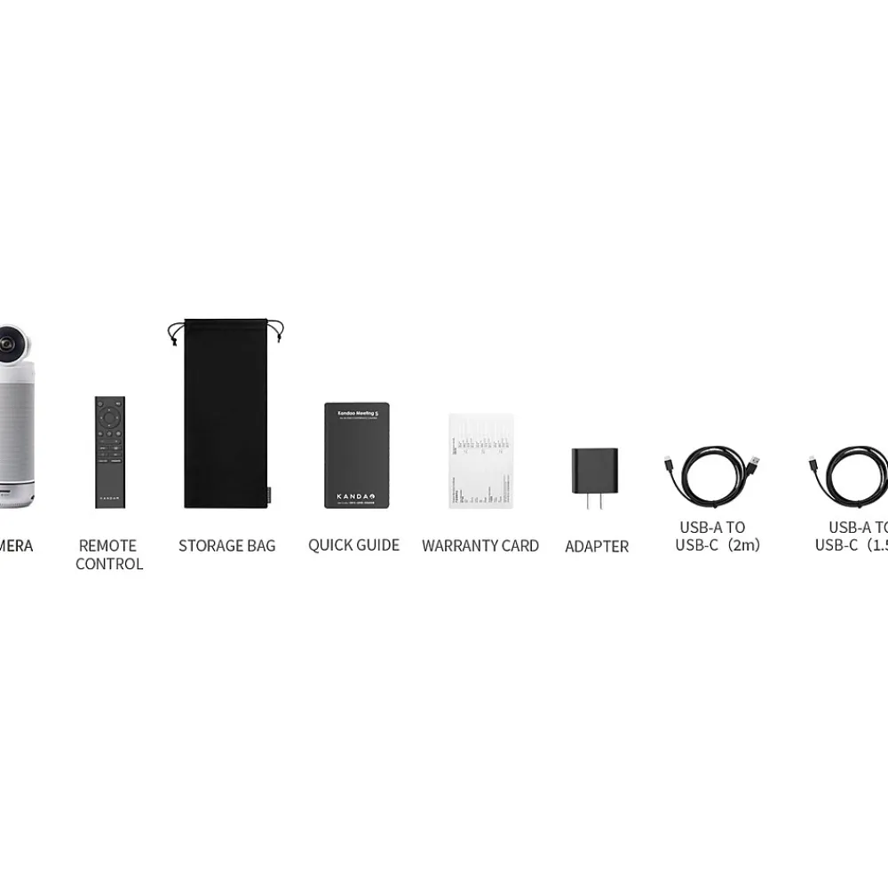 - Box contains: camera, remote control, storage bag, adapter, 6.56′ USB Type-A to USB Type-C cable, 3.28′ USB Type-A to USB Type-C cable, quick start guide, and warranty card
