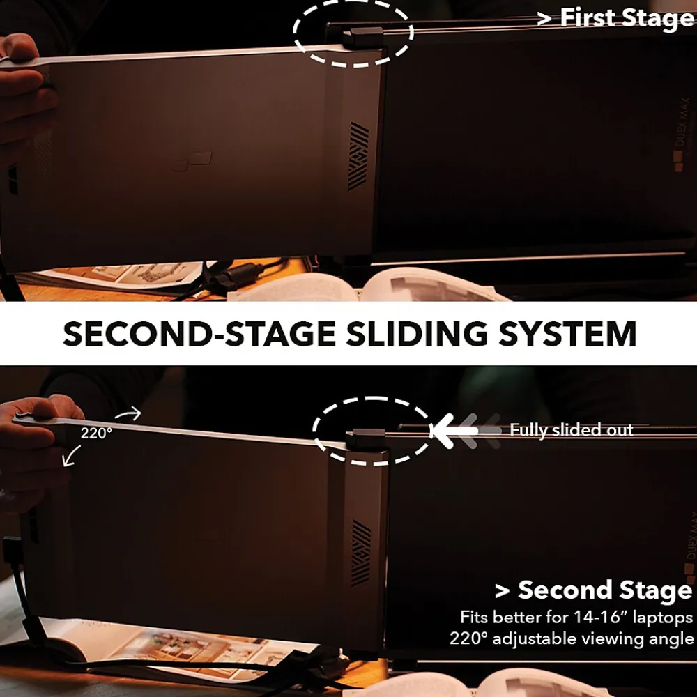 Never worry about not having enough to space on your laptop screen to see everything you need for work or pleasure with the Mobile Pixels DUEX Max. It’s a light, extended dual-screen laptop solution, allowing you to double your screen space. Utilizing the Gray DUEX Max 14.1 in. portable LCD, you can easily convert your single laptop displays into 2 LCD screens total.