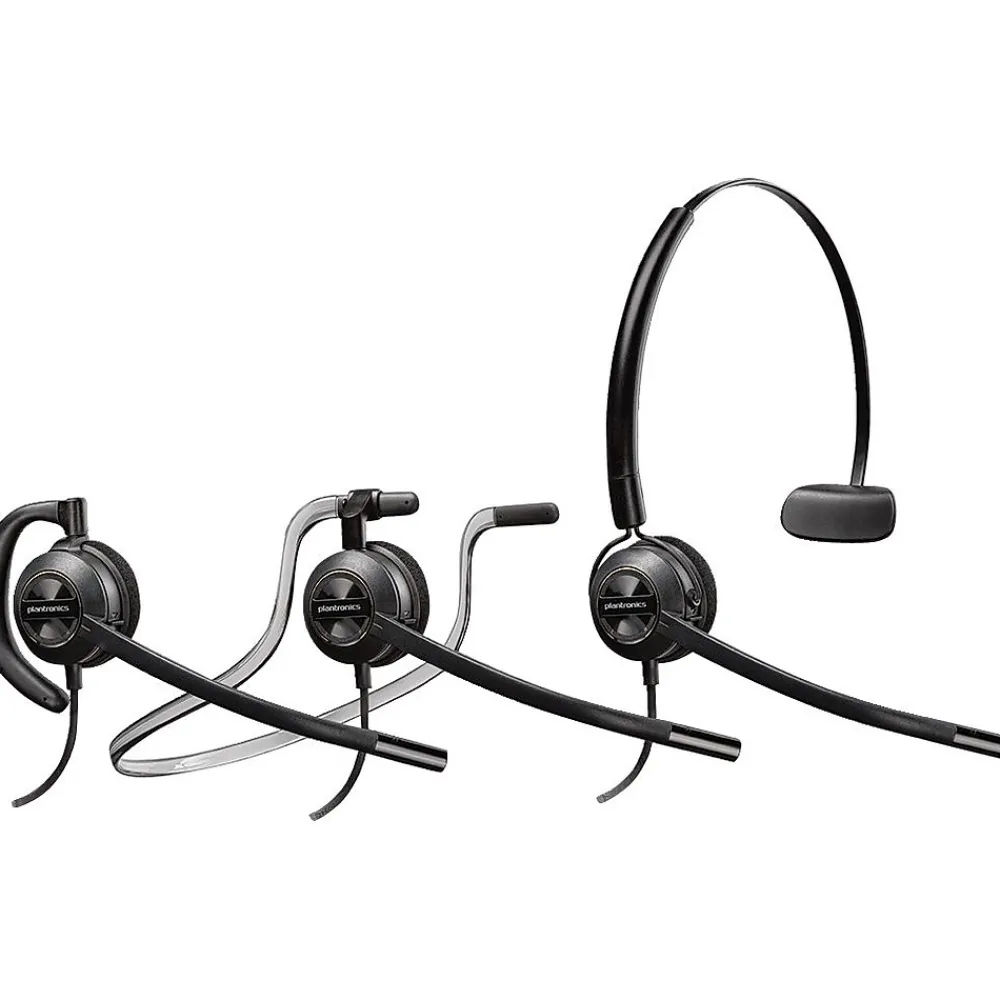 Created with call-intensive environments in mind, this Plantronics Encore headset makes an excellent choice for busy offices. Designed to minimize operational disruptions and costly downtime, this Plantronics headset features wideband audio that deliver s rich, clear conversations and SoundGuard technology that protects from noise spikes and listening fatigue, helping it meet OSHA/Noise at Work regulations. Lightest in its class, this monaural headset can be worn three ways – over-the-head, over-the-ea r or behind-the-neck – to ensure a comfortable experience all day long. Adapter cable not included.