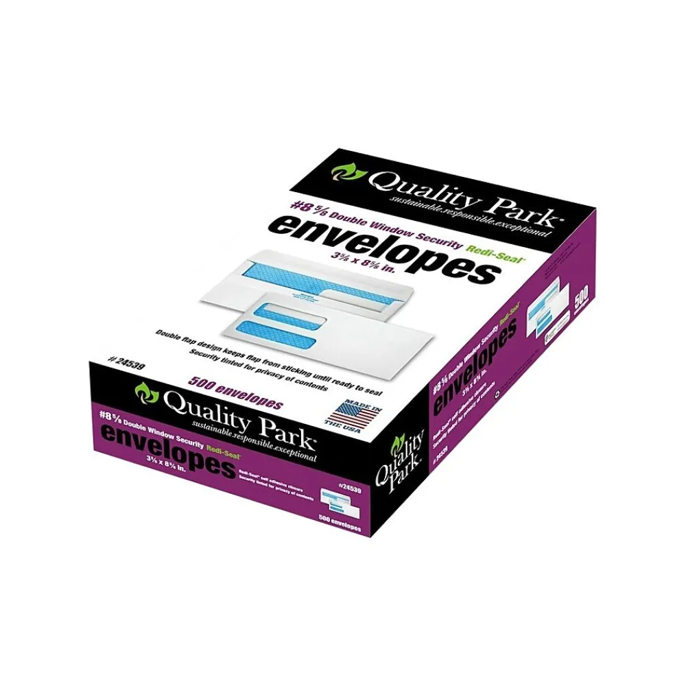 Protect statements, client information, and other confidential documents with these double-window business envelopes. Featuring a reflex blue-tint pattern, these envelopes keep private details secure, even when held up to light. These Quality Park Redi-Seal security #8-5/8 envelopes are sold as a box of 500, offering a long-lasting supply, and include a Redi-Seal closure, so you can seal mail conveniently without the use of moisture.
