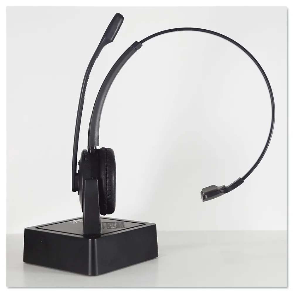 Bluetooth V4.0 for business headset for cell phone. USB for use as softphone headset. Docking station for desktop. Wireless headset with base station.