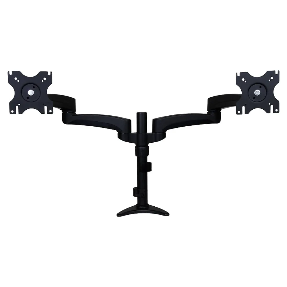 Raise monitors to the perfect viewing height and angle with this monitor arm. This arm supports up to two 24-inch monitors and enables full screen rotation, 90-degree tilt, and two points of arm adjustment to help achieve the optimal viewing angle for any task. This StarTech ARMDUAL dual monitor arm can be clamped to surfaces up to 3.75 inches thick, transforming almost any workstation.