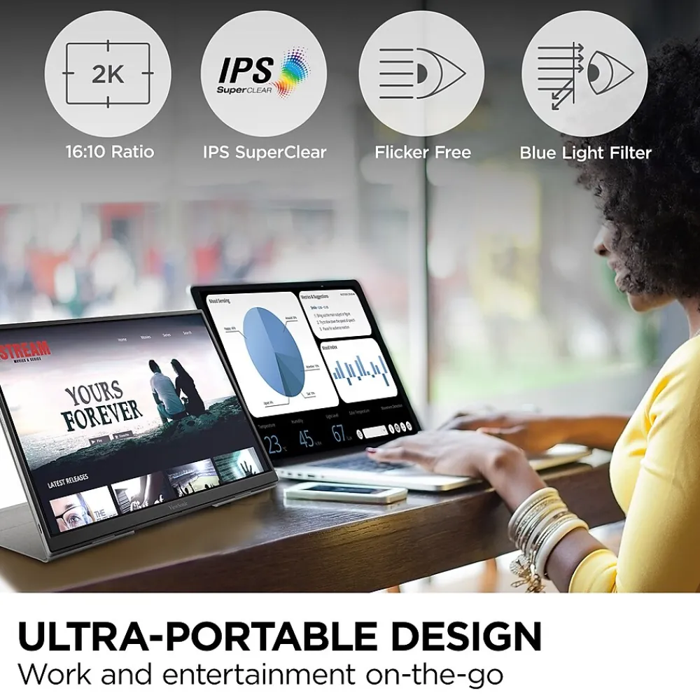 - ULTRA-PORTABLE MONITOR: 16 Inch WQXGA 16:10 (2560x1600p) IPS portable monitor with 60Hz refresh rate and smart cover