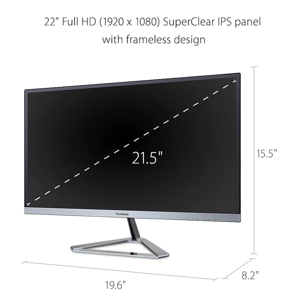 The ViewSonic VX2276-smhd is a sleek 22-Inch (21.5-Inch viewable) Full HD monitor with a modern and minimalist style perfect for home use. With SuperClear IPS Panel technology, this monitor offers best-in-class screen performance with ultra-wide viewing angles. A premium ID includes an ultra-slim profile, unique desktop stand, and a sleek edge-to-edge frameless design, that when combined with vivid 1920×1080 resolution and dual speakers, deliver an immersive viewing experience for home entertainment and multimedia applications. HDMI, DisplayPort, and VGA inputs offer flexible connectivity options for both computing and gaming environments, while ViewSonic’s exclusive ViewMode feature provides intuitive presets for optimized screen performance in different applications. In addition, Flicker-Free technology and a Blue Light Filter help to minimize eye strain from extended viewing periods. With ViewSonic’s industry-leading 3-year limited warranty, this monitor is a solid long-term investment that combines style and high performance for the home.