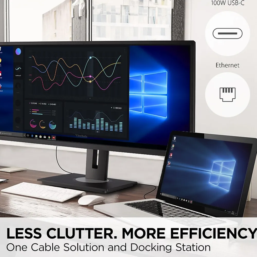 - FLEXIBLE CONNECTIVITY: The VG3456A supports PC, Mac and more with USB-C, RJ45, DisplayPort, USB inputs