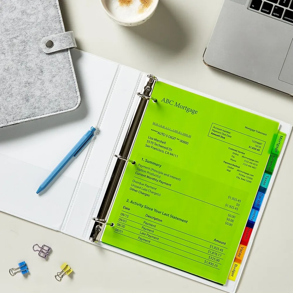 - Organize schoolwork, recipes and other important documents with Avery multicolored 3 ring binder dividers with tabs