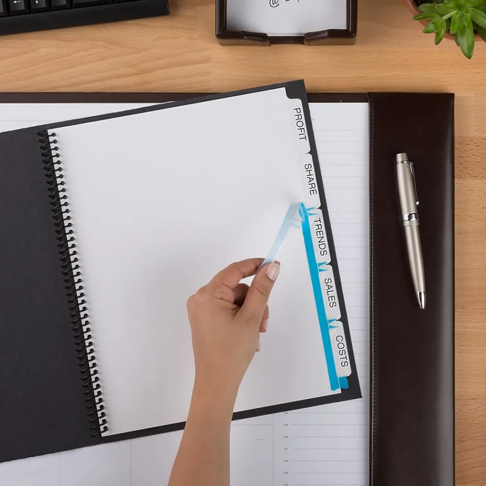 - Get a professional, printed-on look with clear labels that virtually disappear on the white divider tabs