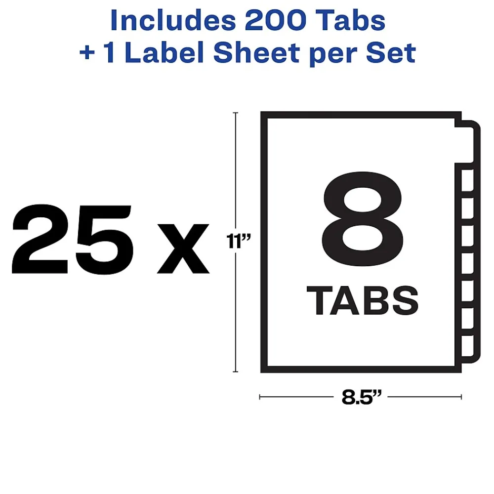 - Label all 8 tab dividers at once with the Index Maker Easy Apply Label strip that results in 25 perfectly aligned sets of tabs