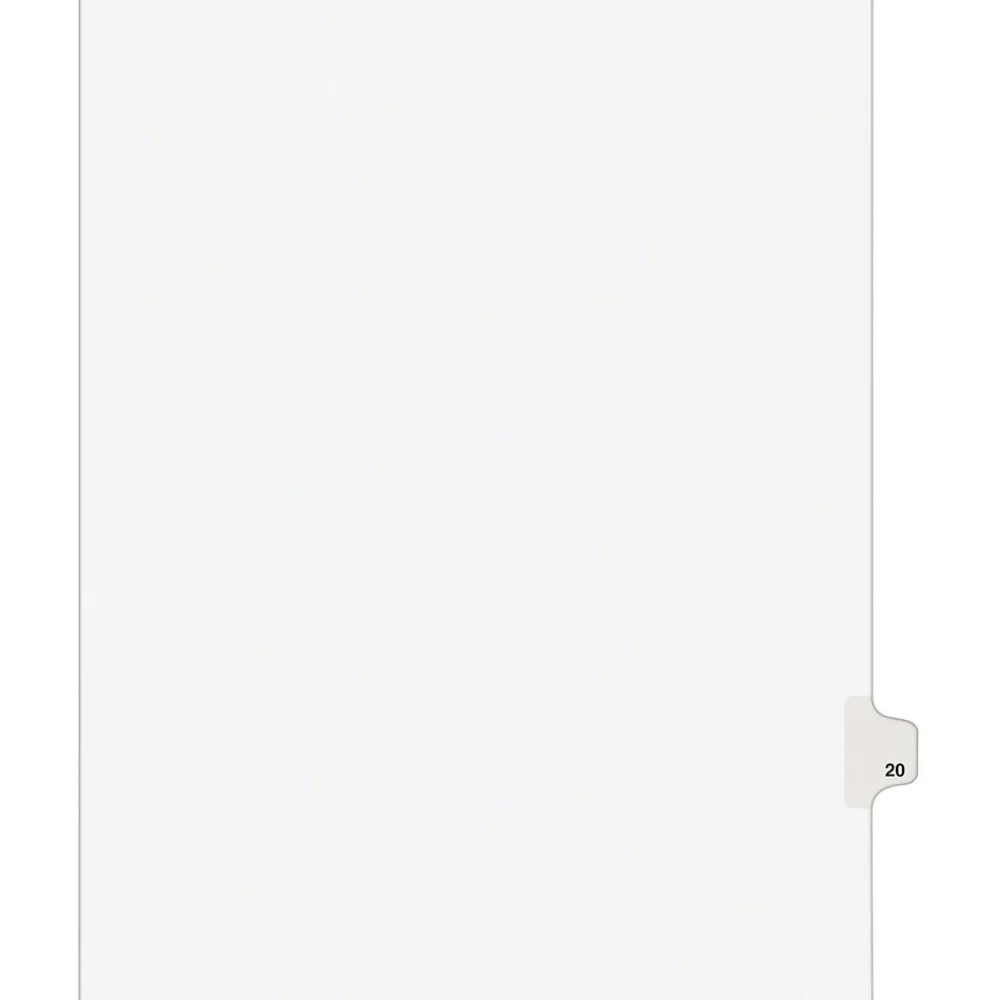 Dividers|Avery Legal Pre-Printed Paper Dividers, Side Tab #20, White, Style, Letter Size, 25/Pack (01020)