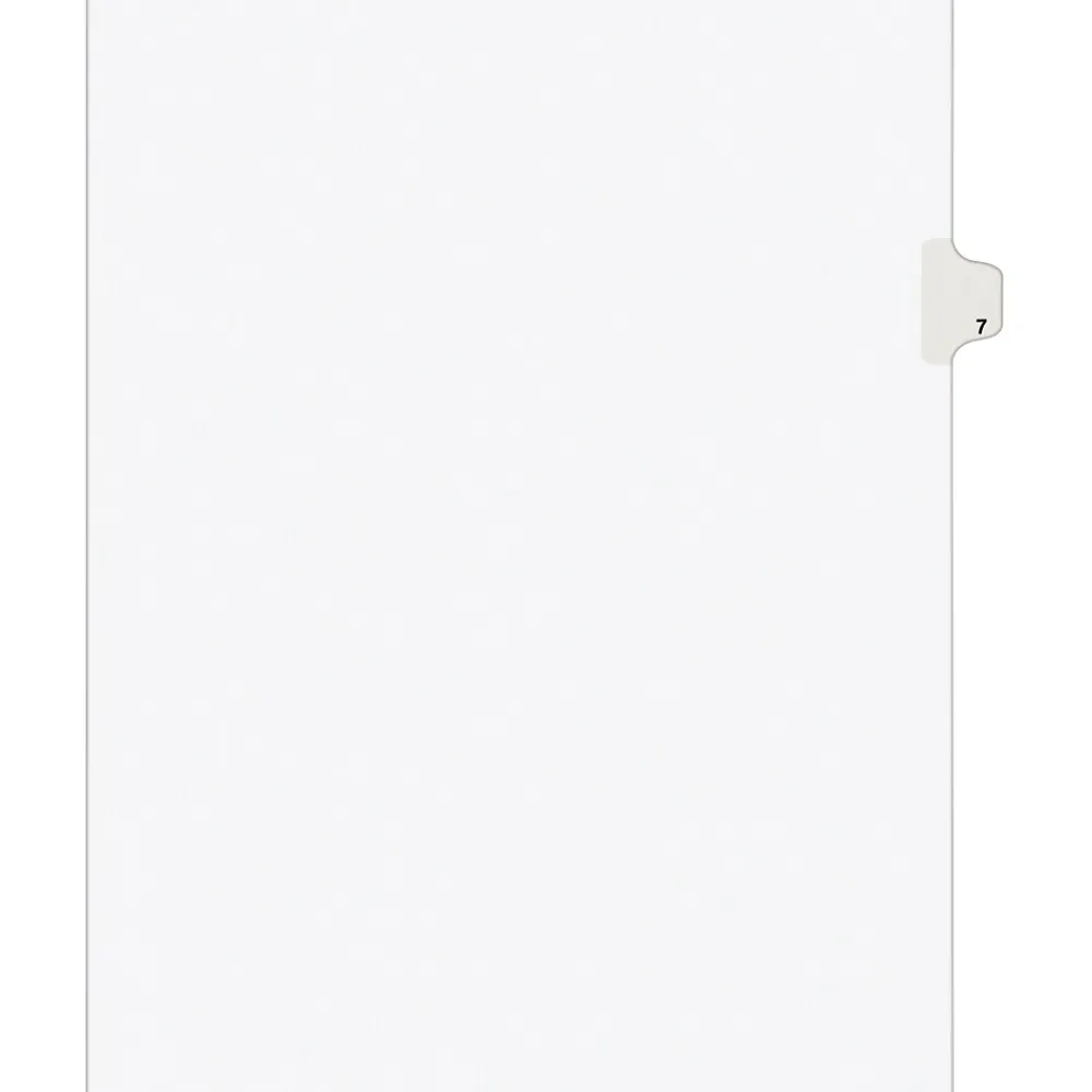 - Avery® Tab 7 Numerical individual divider set measuring 8 1/2″ x 11″ has unpunched binding edge that aids to fit perfectly with any binding system.