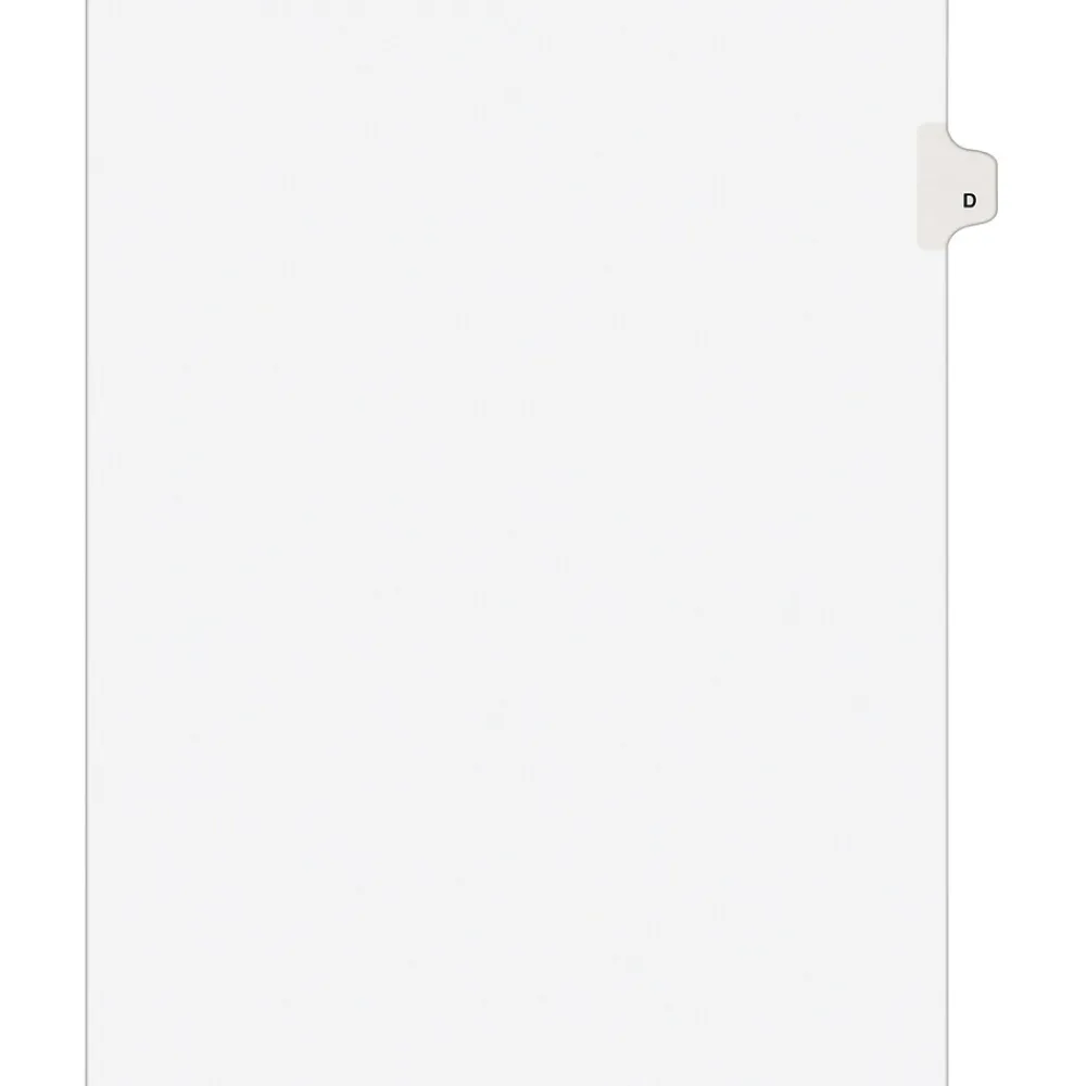 Avery® Tab D alphabetical individual set in white color is perfect choice to organize your index briefs, legal exhibits, mortgage documentation files and more.