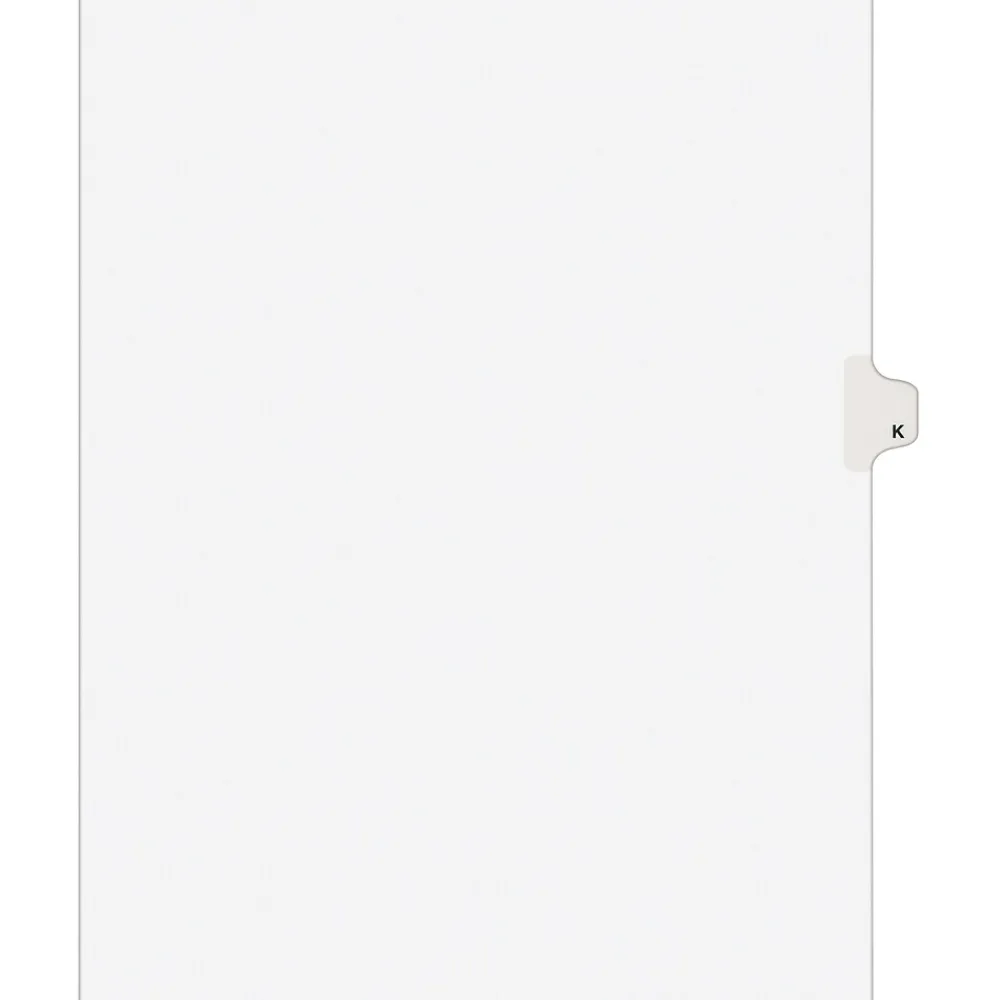 Avery® Tab K alphabetical individual set in white color is perfect choice to organize your index briefs, legal exhibits, mortgage documentation files and more.