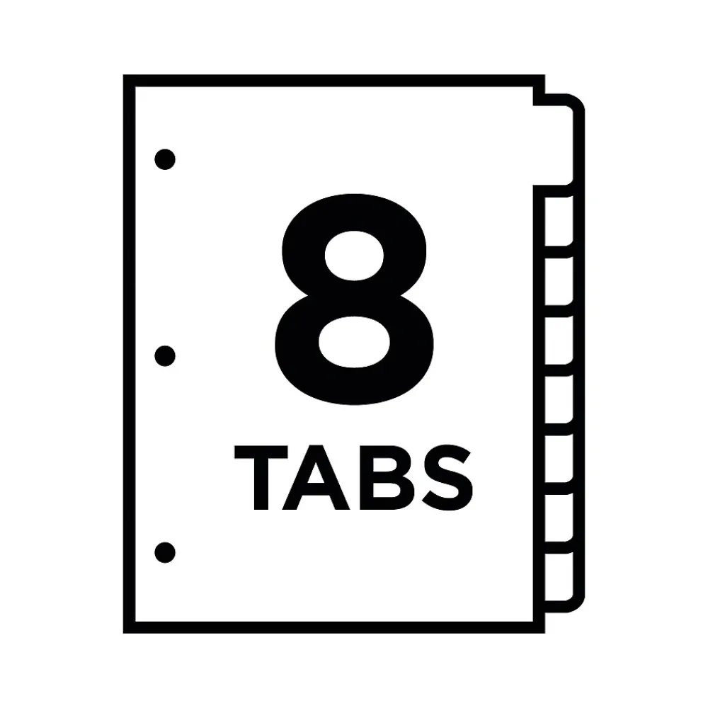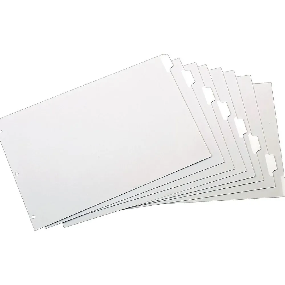Flip open to the section you need quickly with these eight-tab ledger/tabloid poly tab index dividers. The tabs are specially coated to be erasable when used with pens, pencils or non-permanent markers. These Cardinal poly tab index dividers measure 11 x 17 inches, making them perfect for use in ledger binders and tabloid binders.
