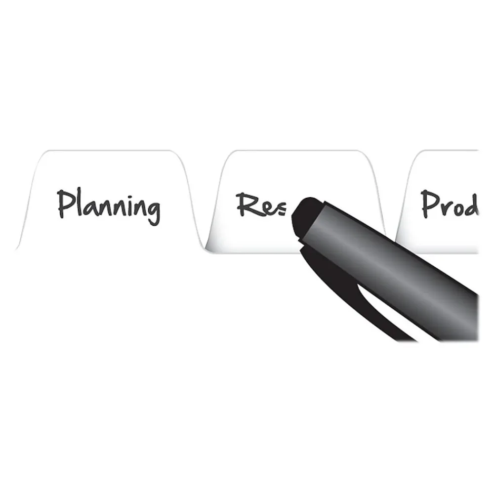 - Special coated tabs are erasable when used with any pen, pencil, or non-permanent marker